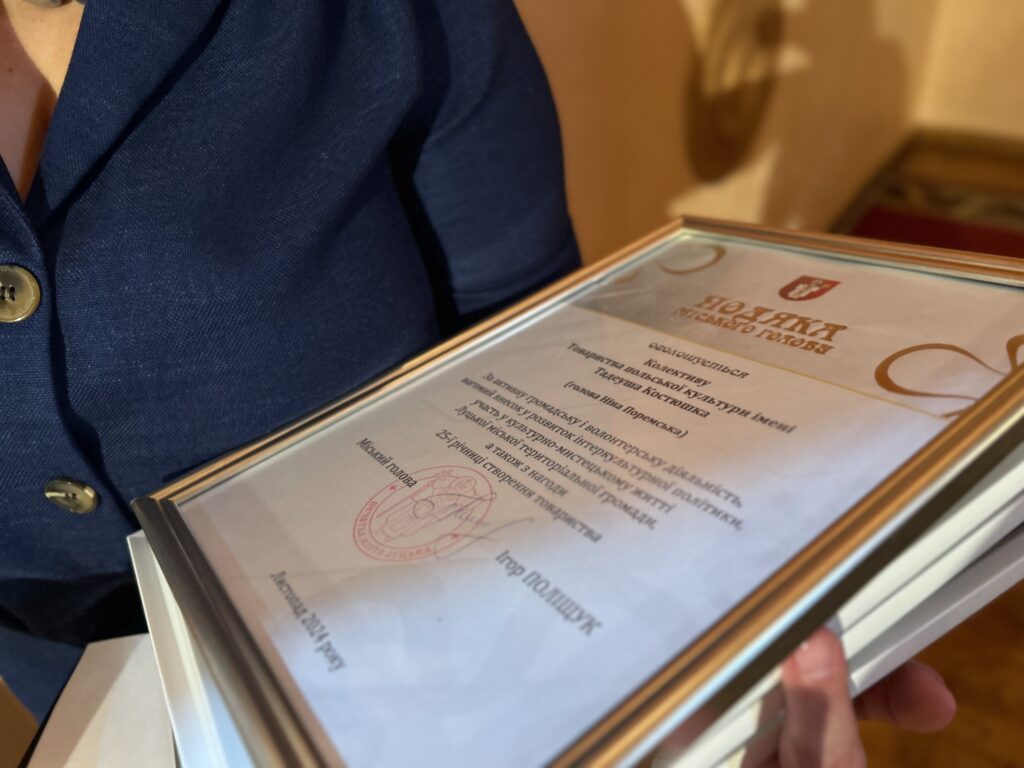 Zastępca przewodniczącego Wołyńskiej Rady Obwodowej Hryhorij Pustowit podziękował Towarzystwu za pielęgnowanie polskich tradycji oraz promowanie języka i kultury polskiej na Wołyniu. Ninie Poremskiej, prezes TKP im. Tadeusza Kościuszki, wręczył podziękowanie od Wołyńskiej Rady Obwodowej. Prezes otrzymała podziękowania również od Wołyńskiej Obwodowej Administracji Państwowej i Łuckiej Rady Miejskiej.