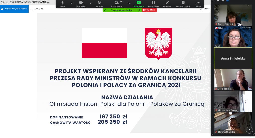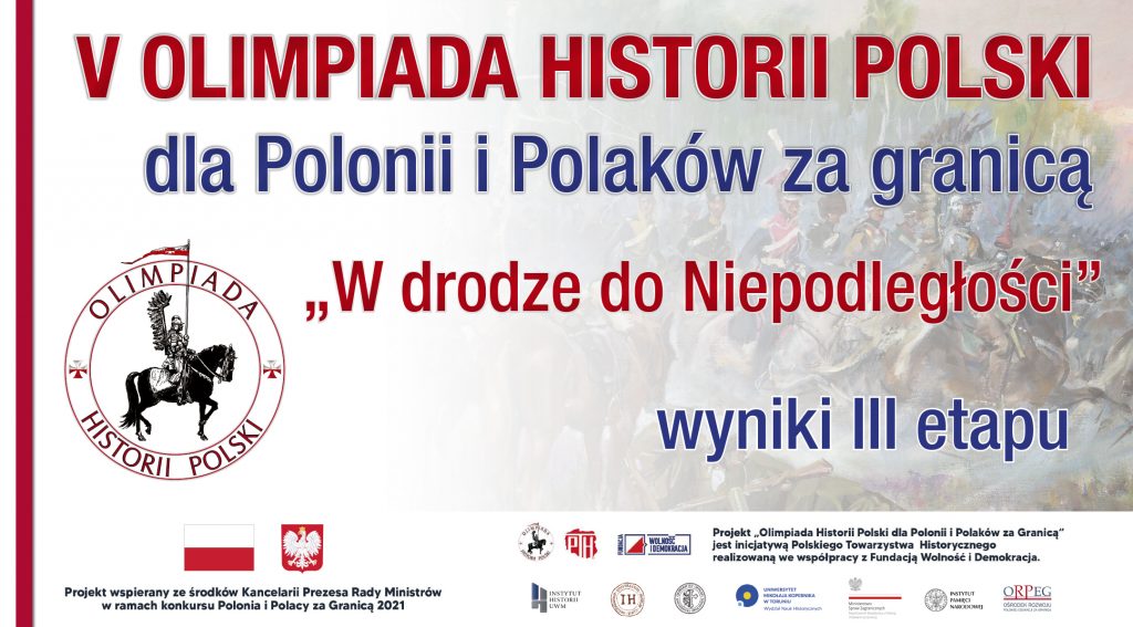 Olimpiada Historii Polski dla Polonii i Polaków za granicą jest inicjatywą Polskiego Towarzystwa Historycznego realizowaną we współpracy Fundacji Wolność i Demokracja. Projekt wspierany ze środków Kancelarii Prezesa Rady Ministrów w ramach konkursu Polonia i Polacy za Granicą 2021.