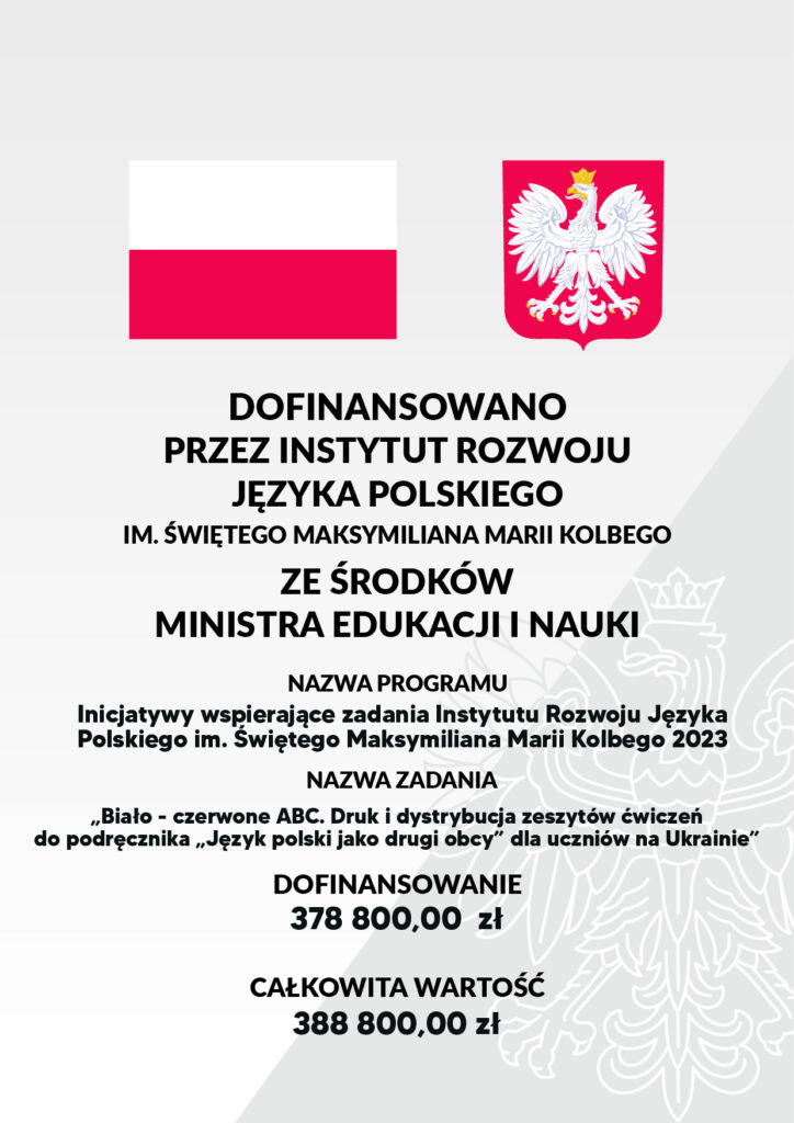 “Biało – czerwone ABC. Druk i dystrybucja zeszytów ćwiczeń do podręcznika „Język polski jako drugi obcy” dla uczniów na Ukrainie”