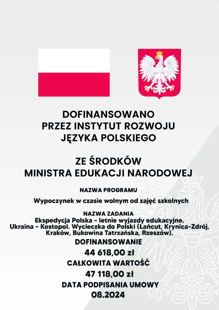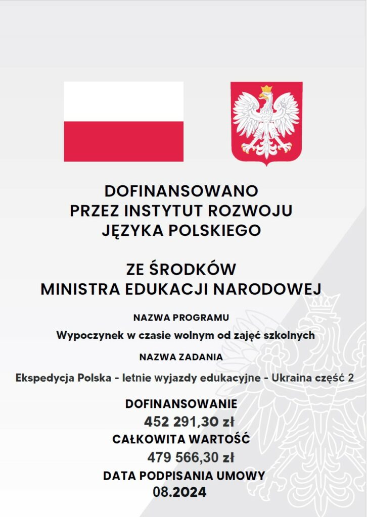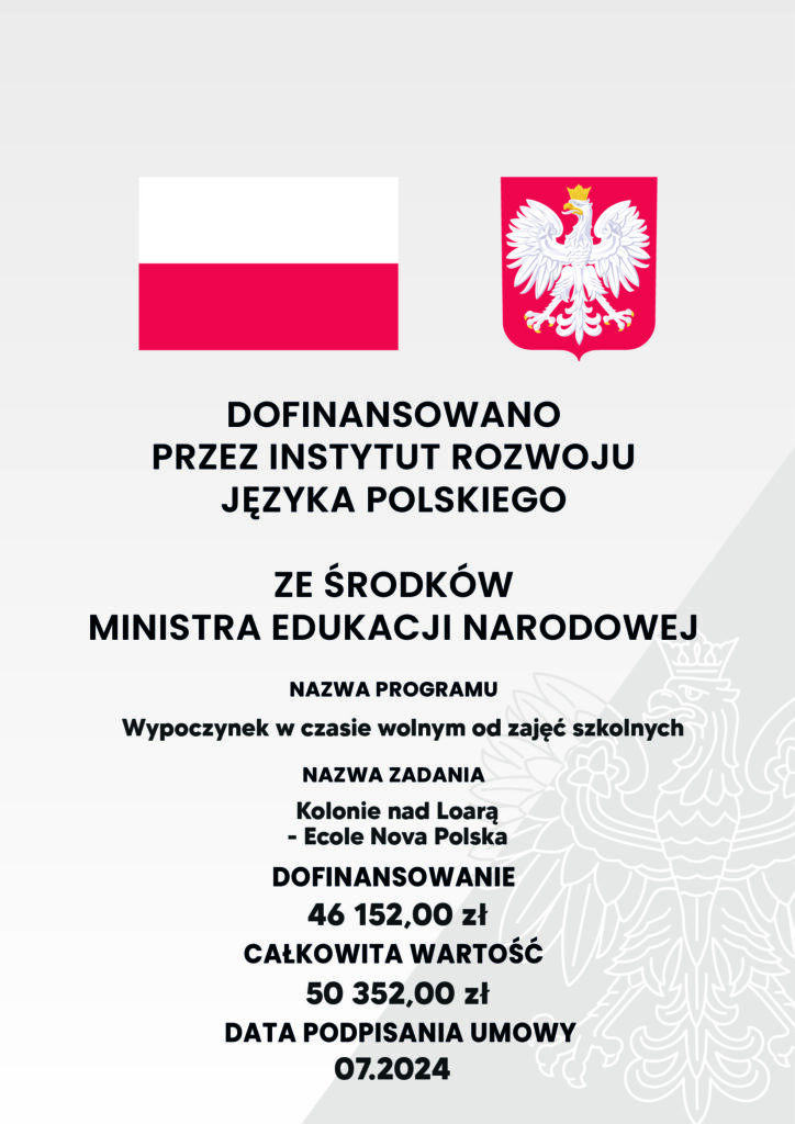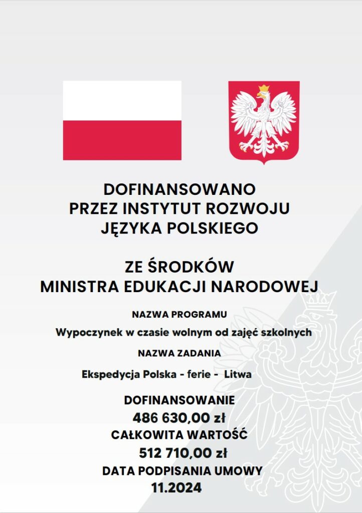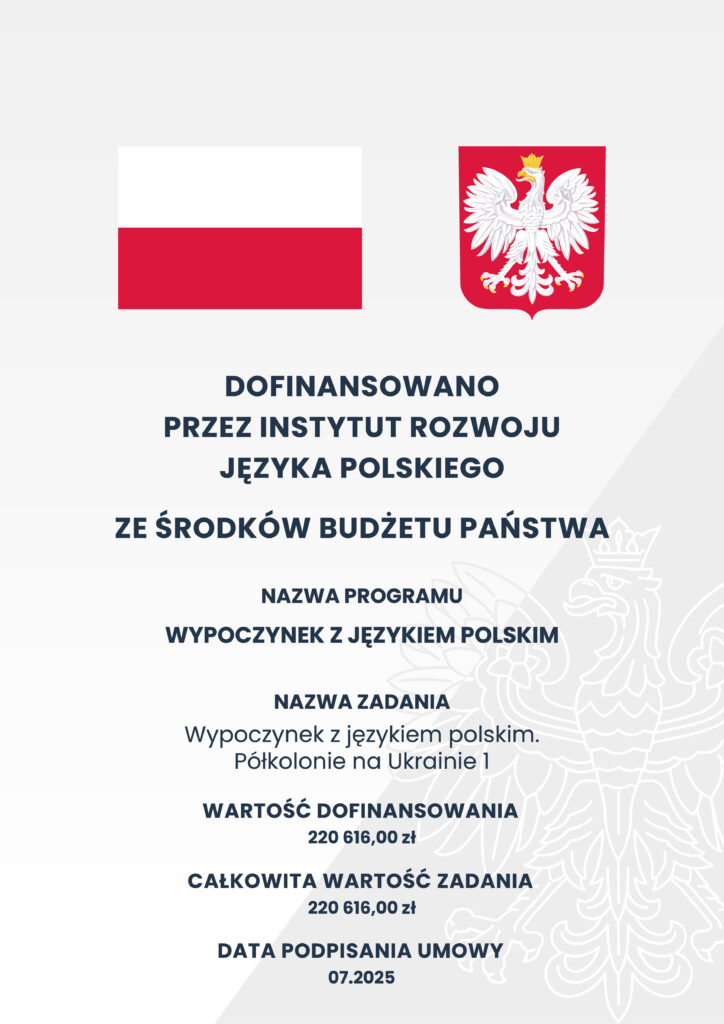 Projekt dofinansowany przez Instytut Rozwoju Języka Polskiego im. św. Maksymiliana Marii Kolbego ze środków Ministerstwa Edukacji Narodowej.