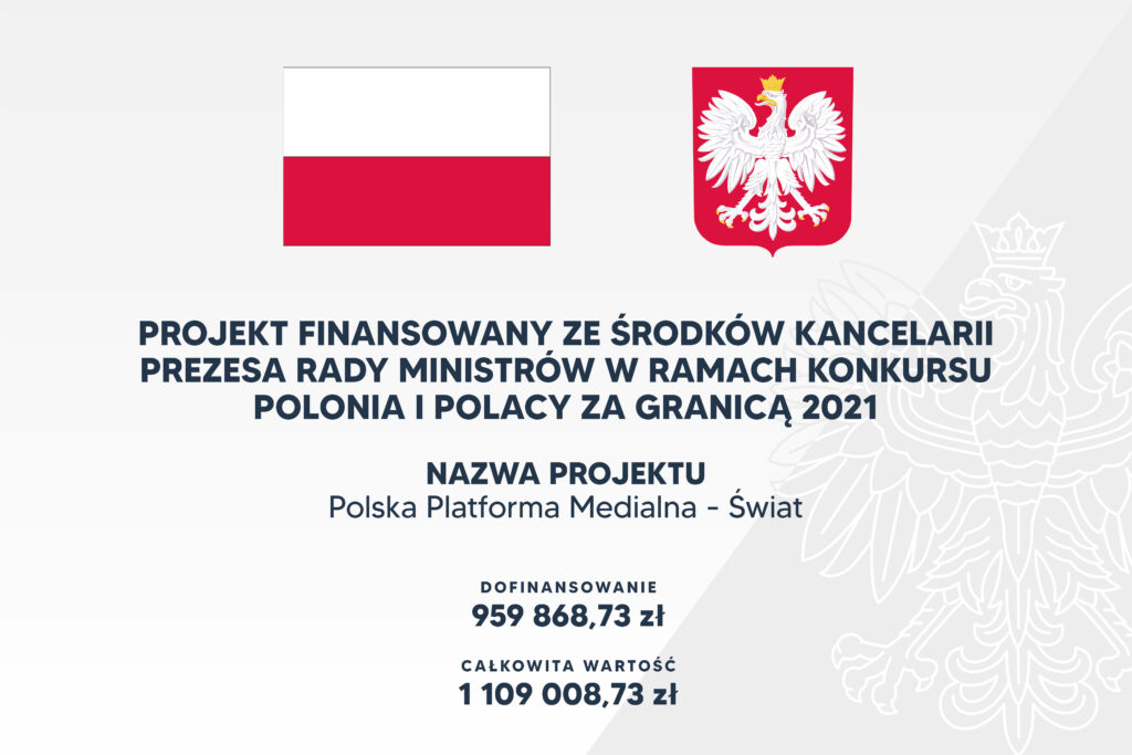 Fundacja Wolność i Demokracja uzyskała z Kancelarii Prezesa Rady Ministrów dofinansowanie na realizację zadania publicznego pt. „Polska Platforma Medialna – Świat”. Zadanie realizowane jest w okresie 01.01.2022 r. – 31.12.2022 r. (druga część). W ramach zadania publicznego wsparciem zostało objętych 8 Beneficjentów – redakcji medialnych na świecie: