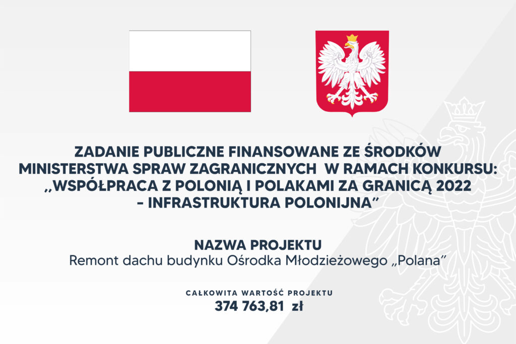 Fundacja Wolność i Demokracja uzyskała z Ministerstwa Spraw Zagranicznych dofinansowanie na realizację zadania publicznego pt “Remont dachu budynku Ośrodka Młodzieżowego „Polana”.