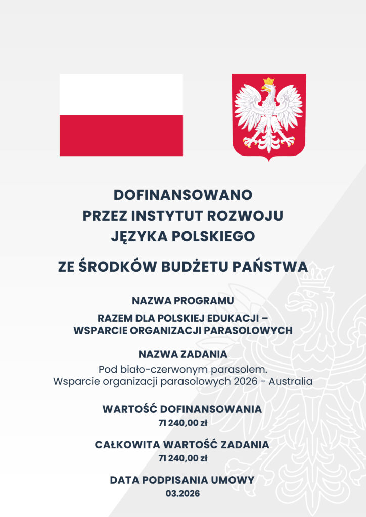 Partner realizujący zadanie: Stowarzyszenie Nasza Polonia w Lurnea (Australia)