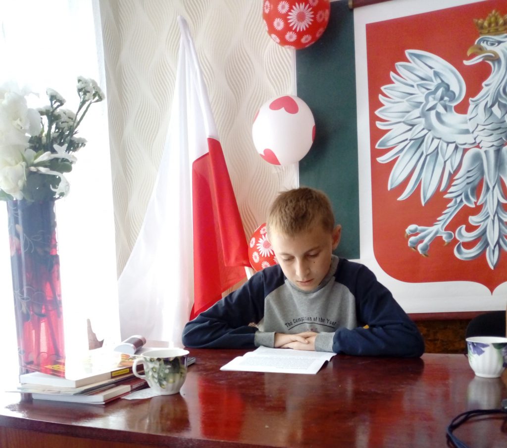 Nowele Polskie czytali : nauczycielka języka polskiego Pani Eugenia Dmytruk , uczeń Szkoły Polskiej Maksym Rizenko, członkowie SKP Walentyna Olech i Włodzimierz Pedycz.