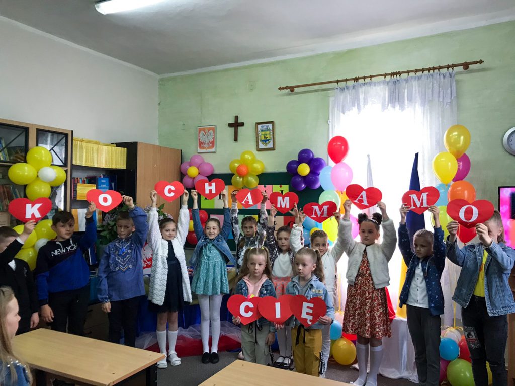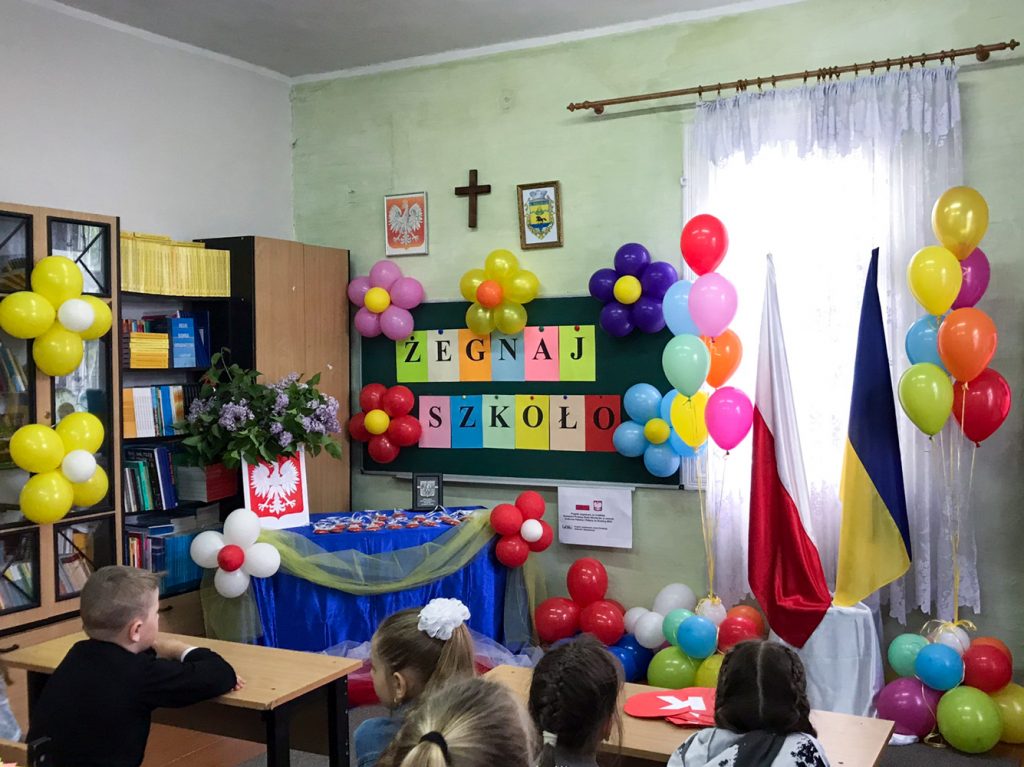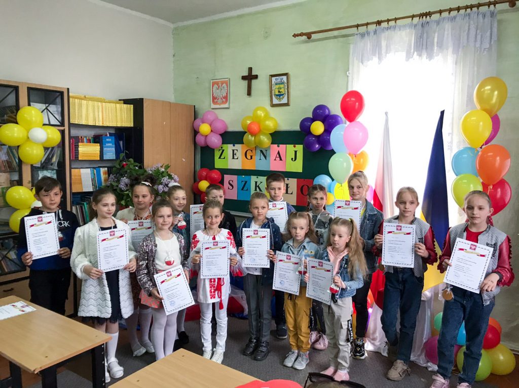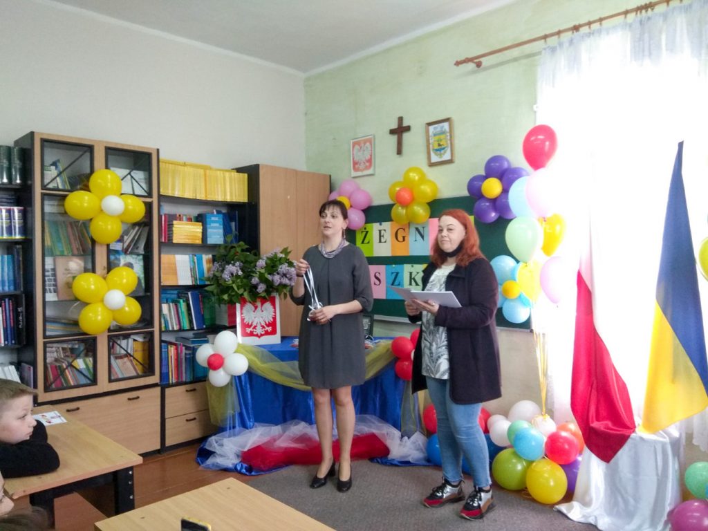 W takie chwili chce się szczerze podziękować wszystkim rodzicom, którzy pomagali nauczycielom w nauce w tym roku. Dziękujemy również naszym uczniom i Pani Prezes Związku Polaków na Ukrainie Oddział w Sławucie Julii Opanasiuk. Nauka i działalność Szkoły odbywa się w ramach Projektu Fundacji Wolność i Demokracja ” Biało-czerwone ABC.”