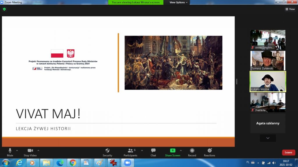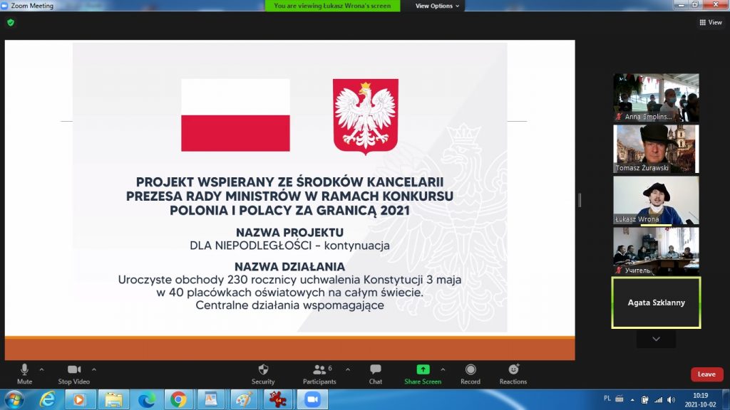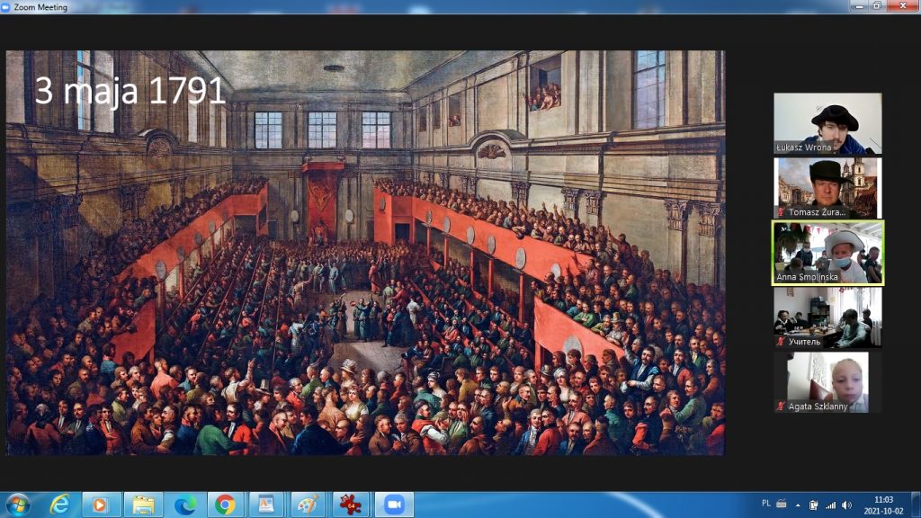 Dzieci z Sobotniej Szkoły w LAgo Patrii oraz Stowarzyszenia kultury polskiej w Charkowie 2 października 2021 odbyły spotkanie poświęcone omówieniu etapów tworzenia Konstytucji 3 maja.
