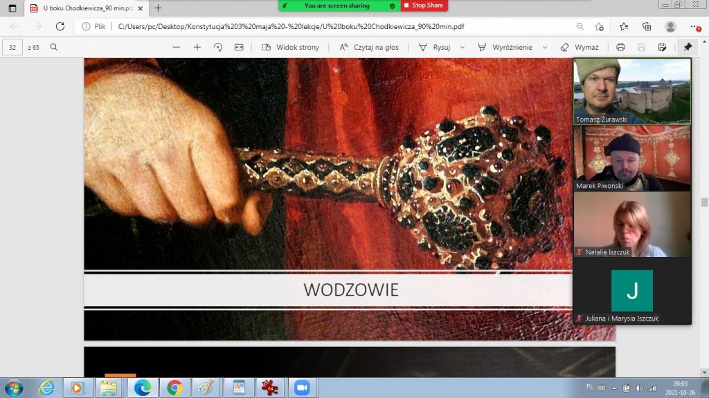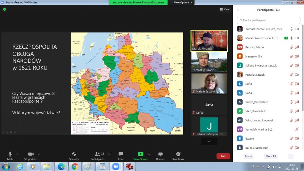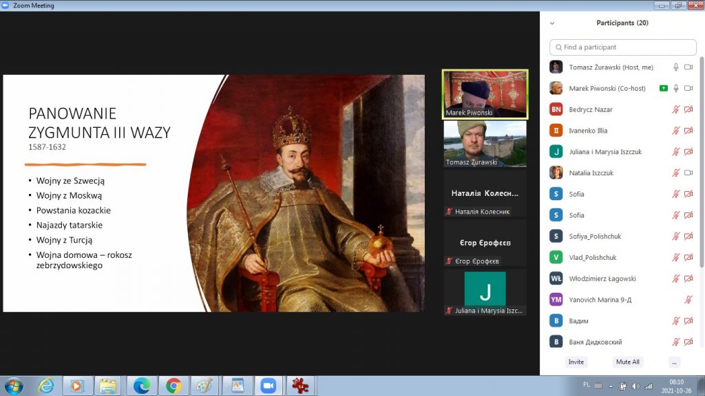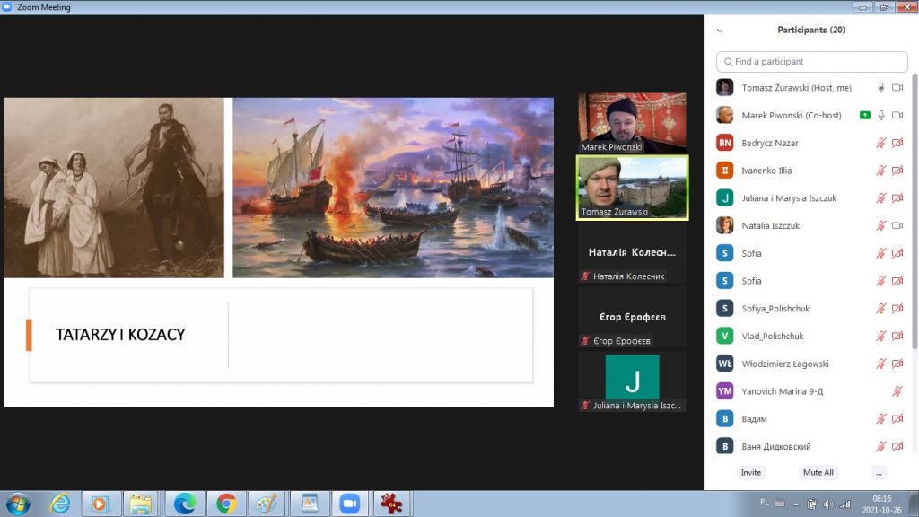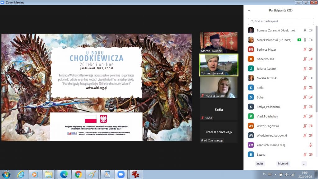 Uczniowie ze Szkoły wiedzy o Polsce w Żytomierzu 26 października uczestniczyli w on-line lekcji “żywej historii” z okazji obchodów 400-lecia Bitwy Chocimskiej