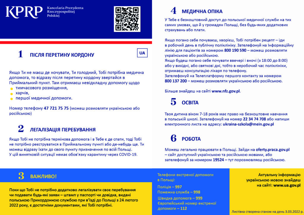 Актуальну інформацію українською мовою знайдеш на сайті: www.ua.gov.pl