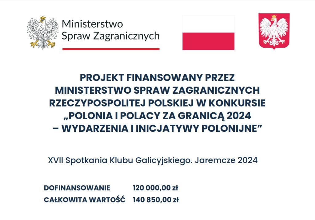 Projekt finansowany przez Ministerstwo Spraw Zagranicznych Rzeczpospolitej Polskiej w konkursie „Polonia I Polacy za granicą 2024 – wydarzenia i inicjatywy polonijne”.