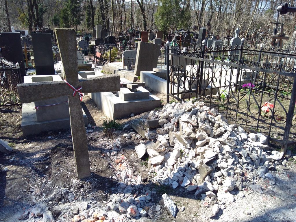 W tym roku zastąpimy kolejne 10 zniszczonych nagrobków nowymi. Aby tego dokonać, najpierw trzeba było usunąć zniszczone betonowe konstrukcje.