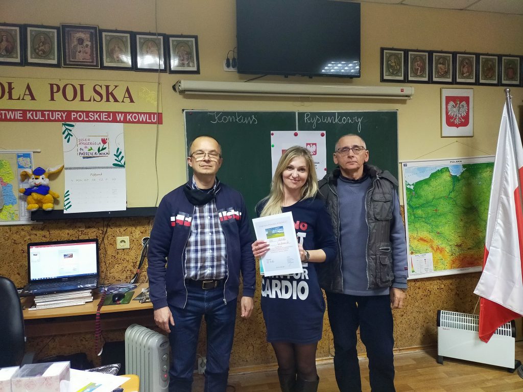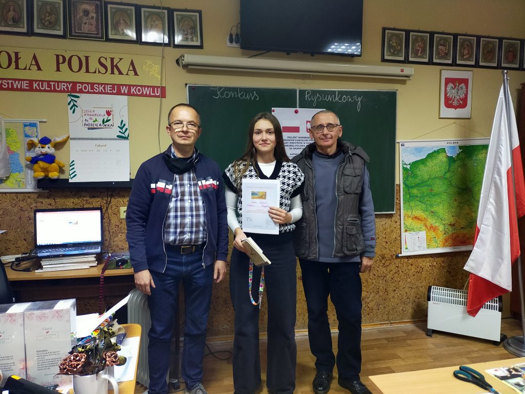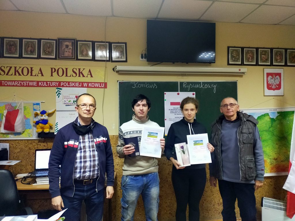 Prezes TKP w Kowlu Anatolij Herka wręczył nagrody i dyplomy oraz podziękował nauczycielowi i uczniom za aktywność.
