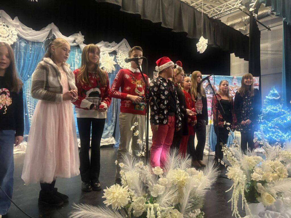 Nauczyciele pięknie udekorowali scenę teatralną, a rada rodziców na czele z Łukaszem Biedą perfekcyjnie przygotowała wigilię. Słowa uznania należą się nauczycielom i asystentom za wspaniałe przygotowanie podopiecznych do występu świątecznego. Dzieci wzruszyły publiczność swoją radością ze śpiewania.