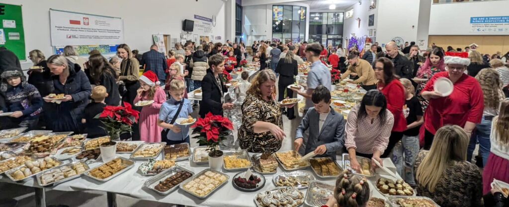 Nauczyciele pięknie udekorowali scenę teatralną, a rada rodziców na czele z Łukaszem Biedą perfekcyjnie przygotowała wigilię. Słowa uznania należą się nauczycielom i asystentom za wspaniałe przygotowanie podopiecznych do występu świątecznego. Dzieci wzruszyły publiczność swoją radością ze śpiewania.