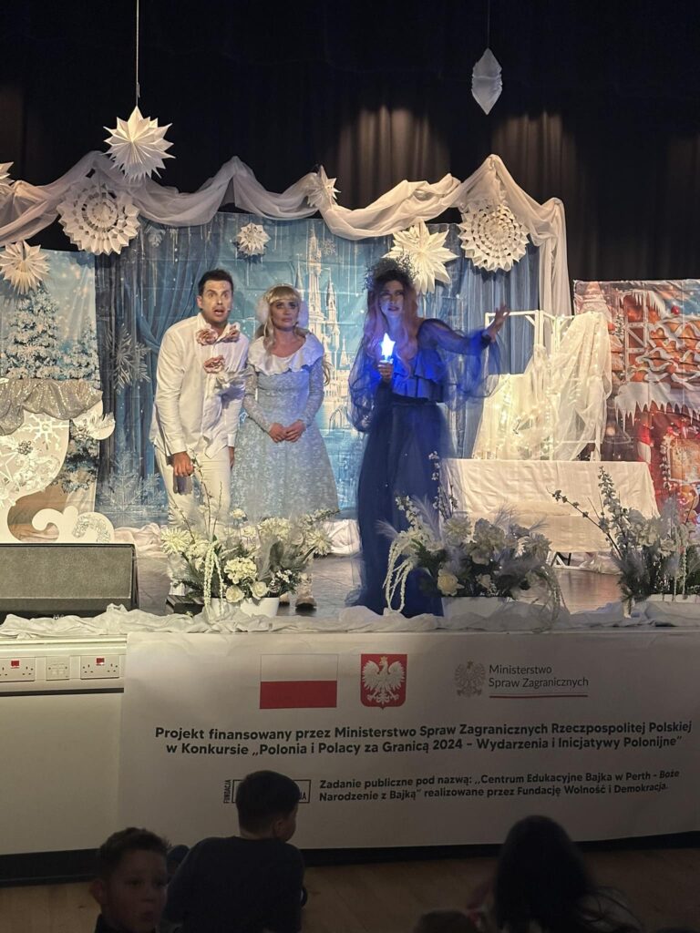 Projekt został dofinansowany przez Ministerstwo Spraw Zagranicznych RP w konkursie „Polonia i Polacy za Granicą 2024 – Wydarzenia i Inicjatywy Polonijne”. Zadanie pod nazwą „Centrum Edukacyjne Bajka w Perth – Boże Narodzenie z Bajką” zostało zrealizowane przez Fundację Wolność i Demokracja”.