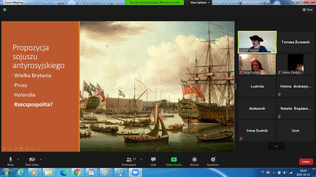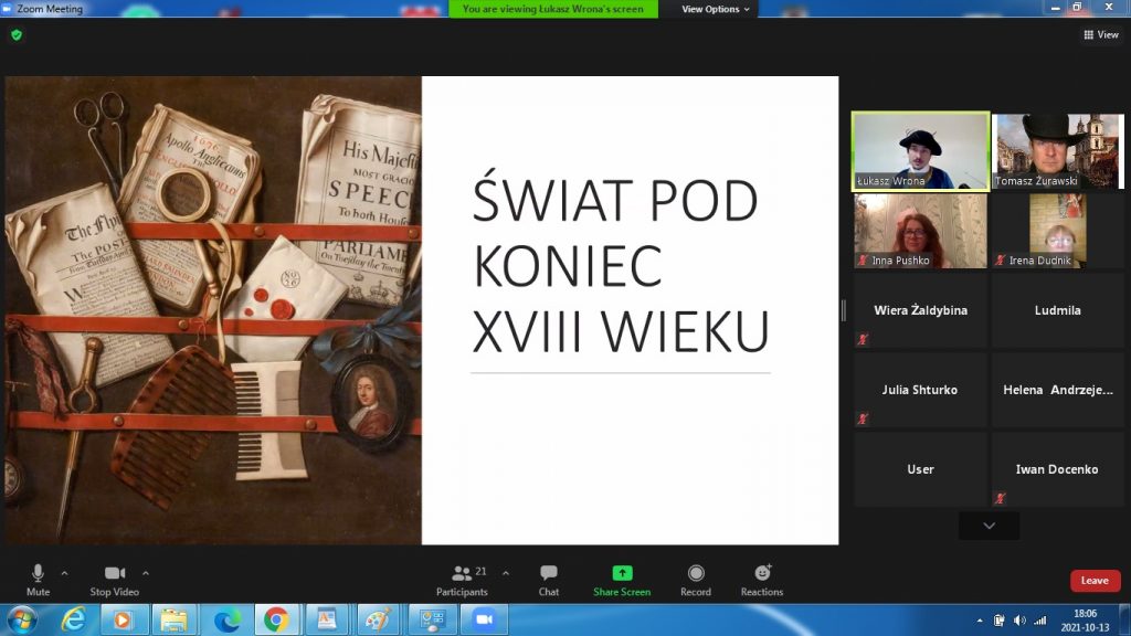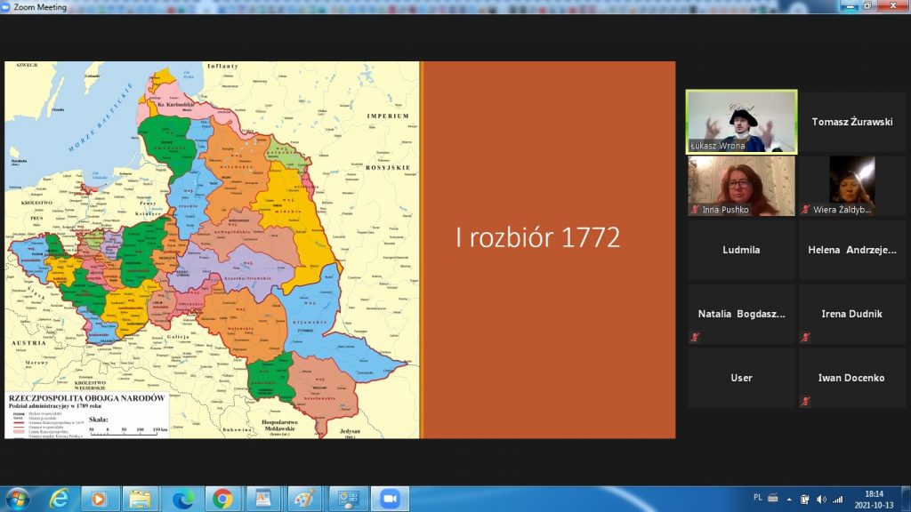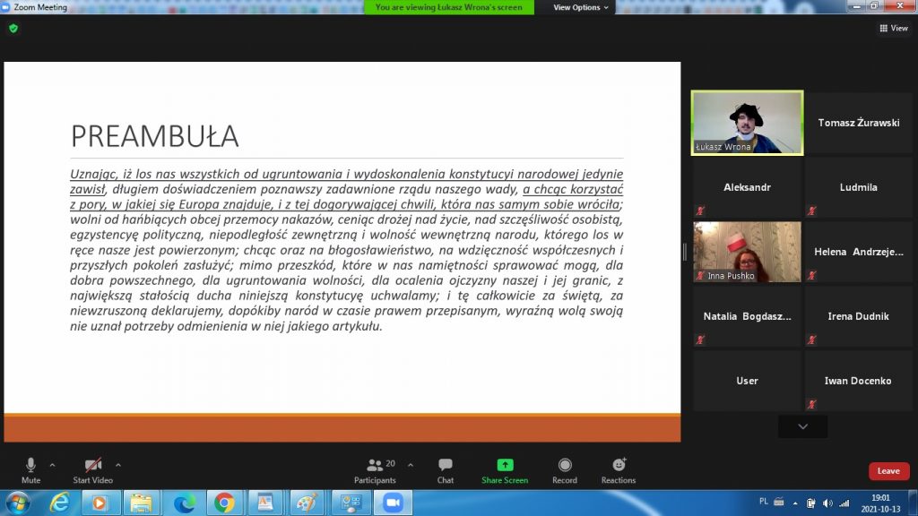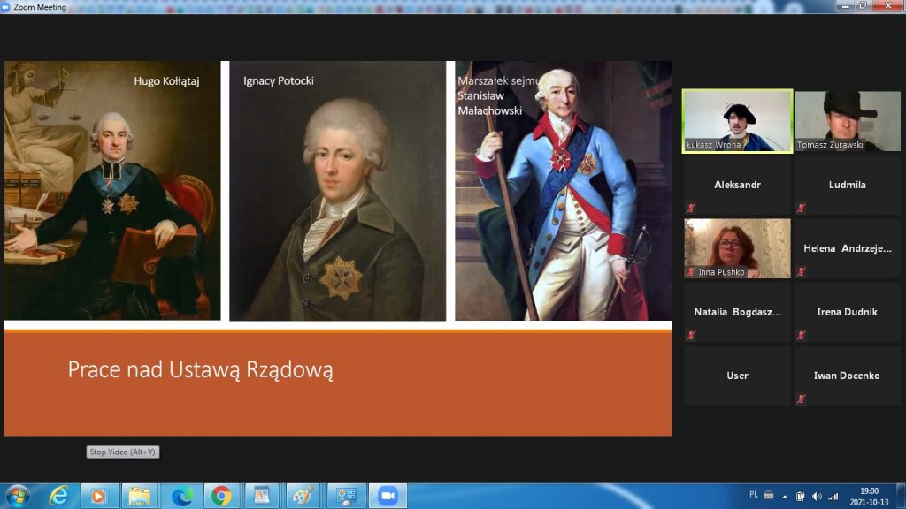 Uczniowie ze Związku Polaków Połtawszczyzny “Polonia” w Połtawie, Centrum Kultury i Języka Polskiego w Czortkowie oraz Związku Polaków Ojczyzna w mieście Krzywy Róg 13 października 2021 uczestniczyli w on-line lekcji „żywej historii” z okazji obchodów 230. rocznicy uchwalenia Konstytucji 3 Maja