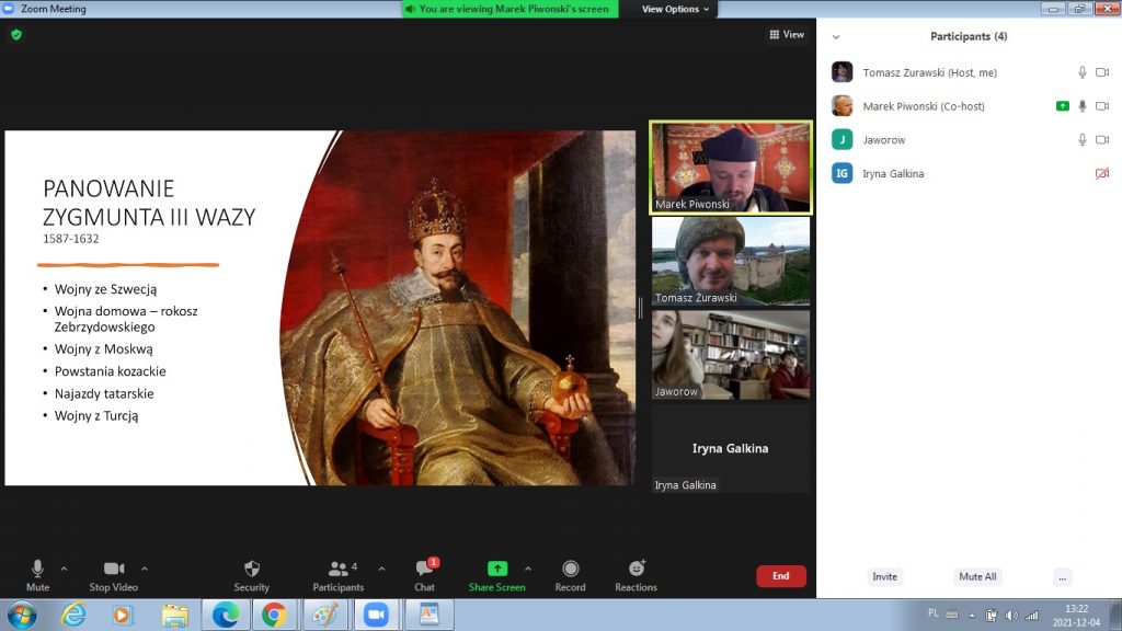 Młodzież z Polonijnego Uniwersytetu m. Jaworowa 4 grudnia uczestniczyła w lekcji online z okazji obchodów 400-lecia bitwy chocimskiej.