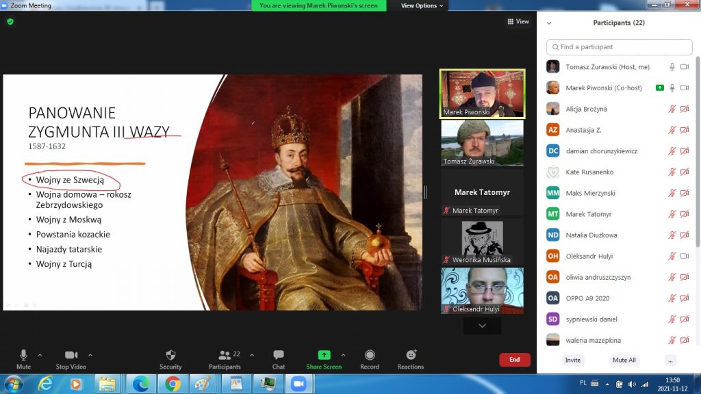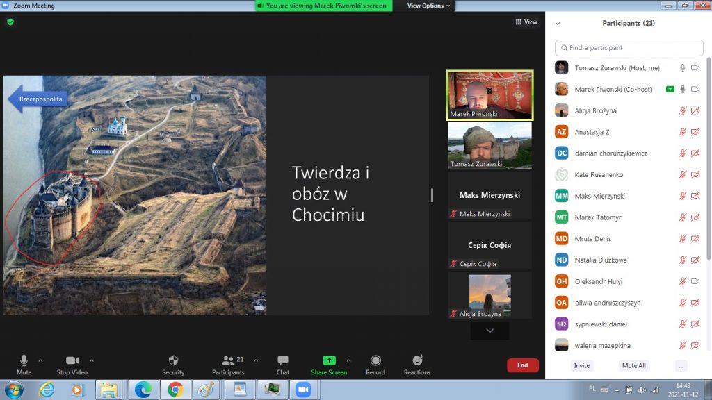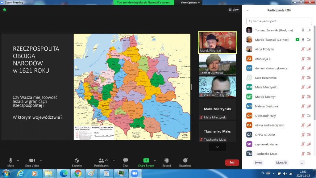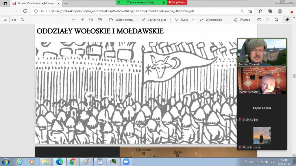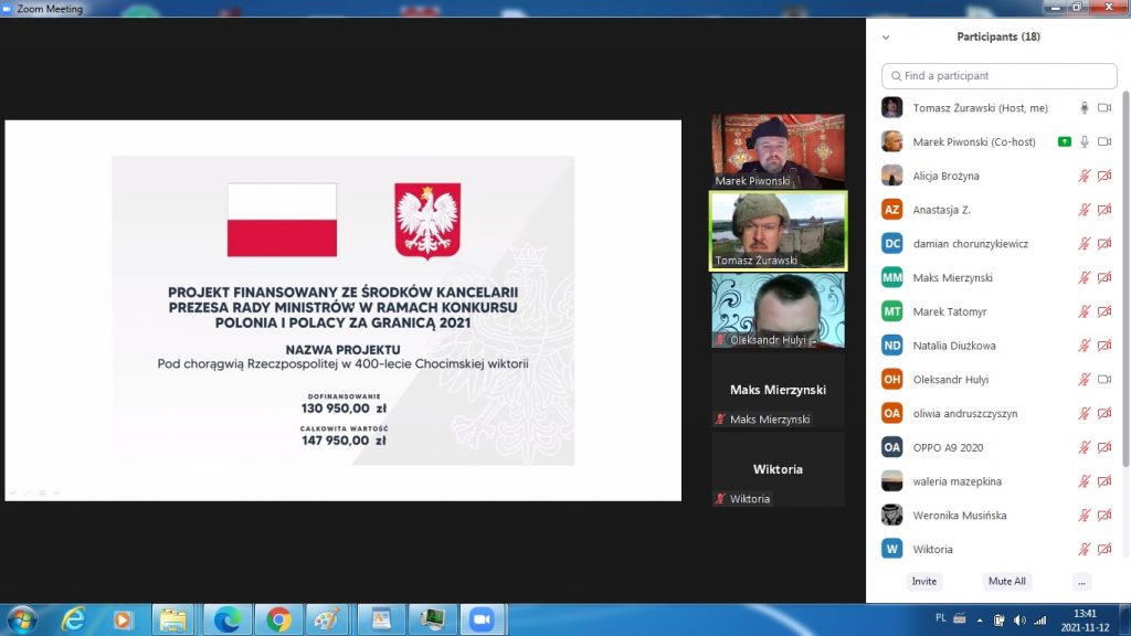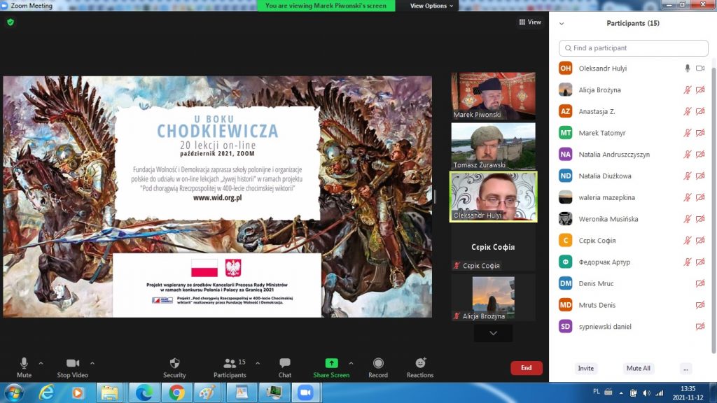 Uczniowie Liceum nr. 10 im. św. Marii Magdaleny we Lwowie 12 listopada uczestniczyli w on-line lekcji “U boku Chodkiewicza” z okazji obchodów 400. rocznicy wiktorii chocimskiej