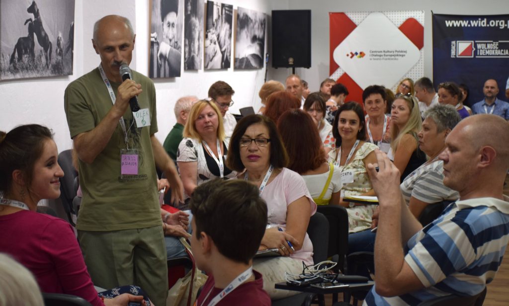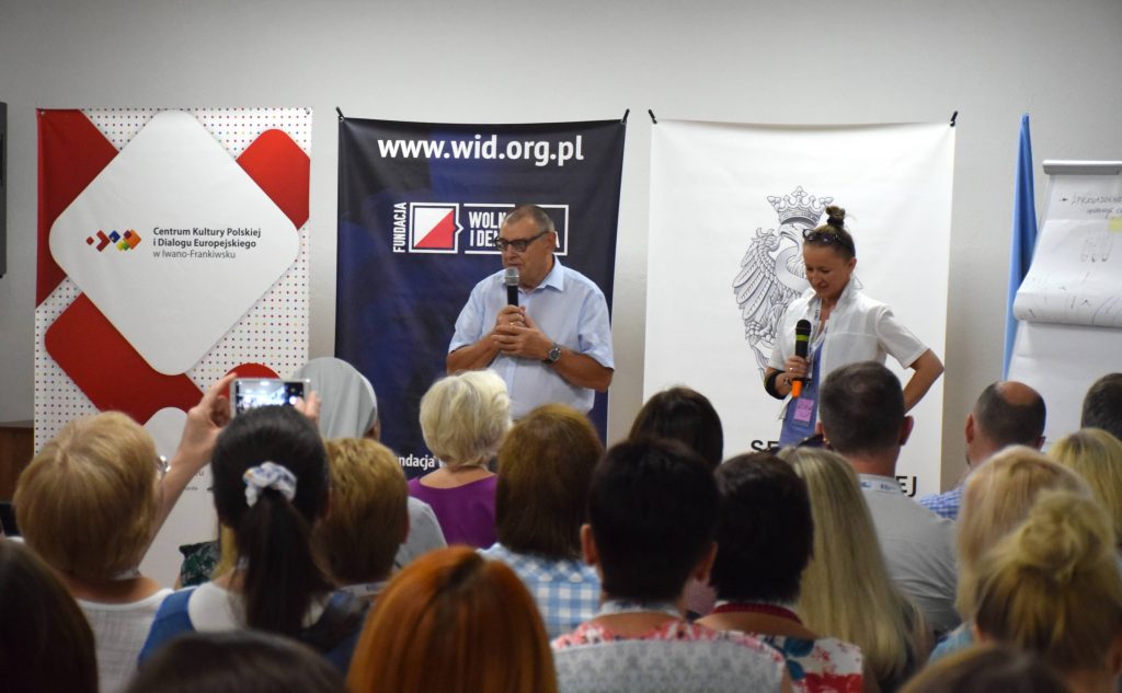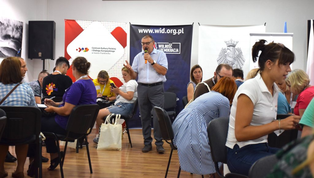 Prawie 100 uczestników z różnych zakątków Ukrainy w dniach 23-26 sierpnia bierze udział w Liderskim Centrum Szkoleniowym w Iwano-Frankiwsku. Jest to II etap projektu Liderskie Centrum Szkoleniowe – profesjonalizacja polskich organizacji na Ukrainie który Fundacja Wolność i Demokracja realizuje na rzecz organizacji polonjnych na Ukrainie. W drugim etapie projektu, (pierwszy odbył się w Winnicy w dniach 24-26 czerwca) bierze udział 100 osób – pracownicy polskich organizacji, reprezentujący aż 15 środowisk: Stowarzyszenie Kultury Polskiej im.Z.Krasińkiego, Polskie Kulturalno-Oswiatowe Stowarzyszenie “Rodzina”, Centrum Języków i Kultur Słowiańskich, Ośrodek kultury Polskiej im Karola Wojtyły, Fundacja Świętego Antoniego, Centrum Kultury Polskiej i Dialogu Europejskiego w Iwano-Frankiwsku, Federacja Organizacji Polskich na Ukrainie “Dom Polski” w Kijowie, ZPIT ” Polanie znad Dniepru”, KPMA „Młodzi i Kreatywni”, Związek Polaków Lewego Brzegu, Szkółka Języka Polskiego przy Zgromadzeniu Sióstr Misjonarek Apostolstwa Katolickiego w Korostyszewie, Stowarzyszenie Polaków “Polonia” im.K.Szymanowskiego, Katolicki Uniwersytet Trzeciego Wieku, Polskie Towarzystwo Kulturalno-Oswiatowe Obwodu Tarnopolskiego, Chrześcijańsko Demokratyczny Związek Polaków Winnicy, Centrum Rozwoju i Partnerstwa “Polonia”.