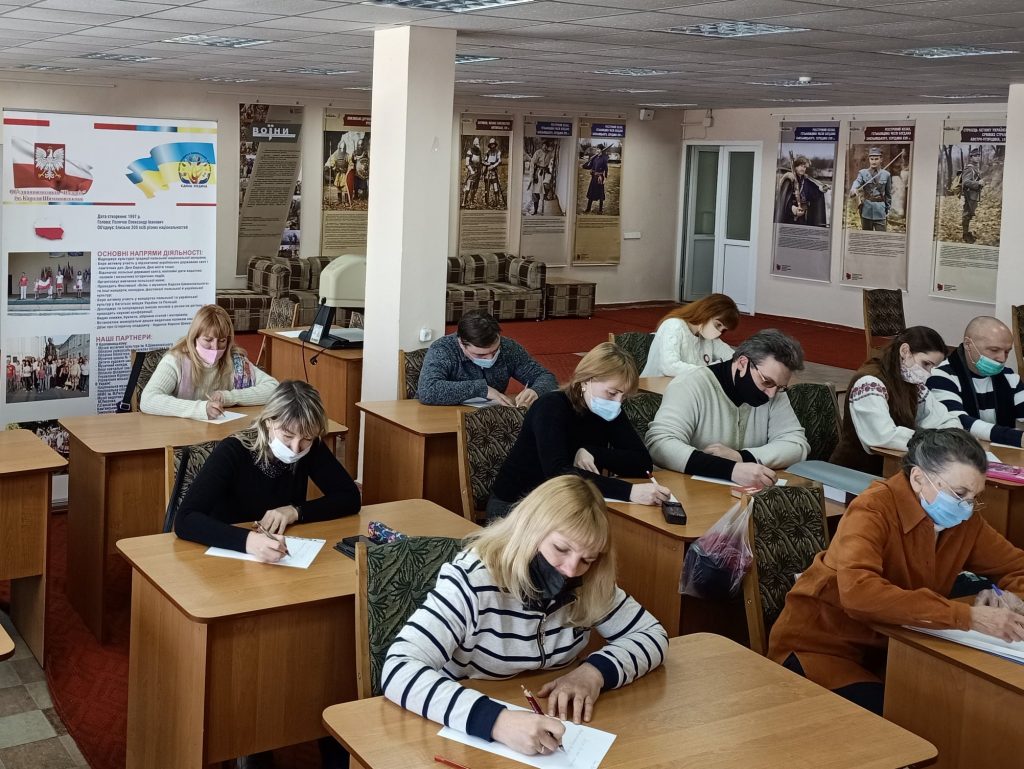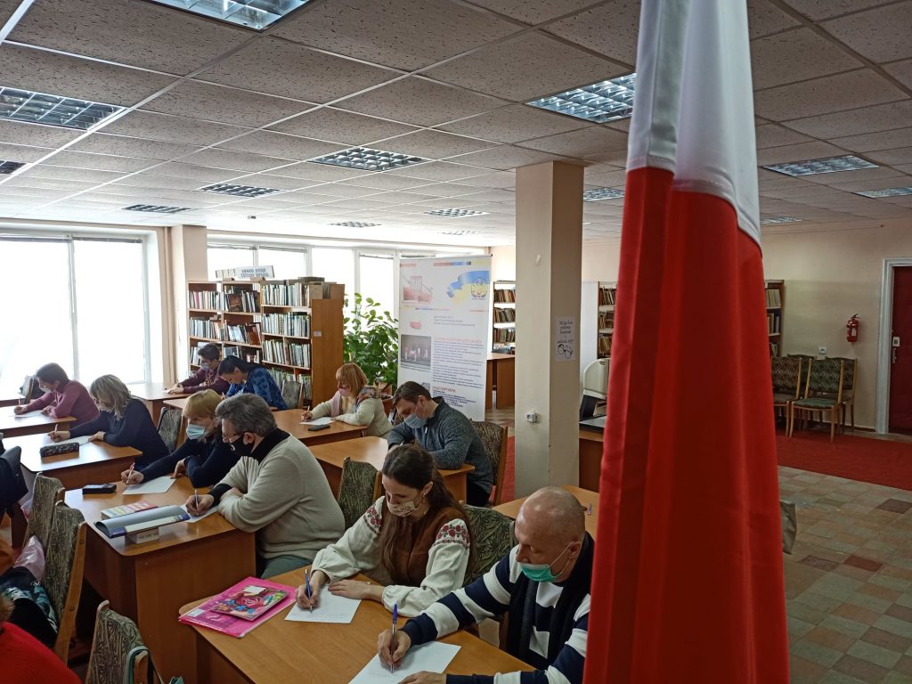 20-21 lutego z okazji Międzynarodowego Dnia Języka Ojczystego w Bibliotece im. D.Czyżewskiego oraz w klasie Polskiej Szkoły Sobotniej przeprowadzono dyktando w języku polskim i ukraińskim. Około 80 członków Stowarzyszenia Polaków “Polonia” im. K. Szymanowskiego zostali podzielone na pięć grup ze względu na kwarantannę i dystancję. Tekst dyktando zatytułowany „Język – to moc narodu” przygotowany przez nauczyciela historii, dyrektora Aleksandra Polaczka.