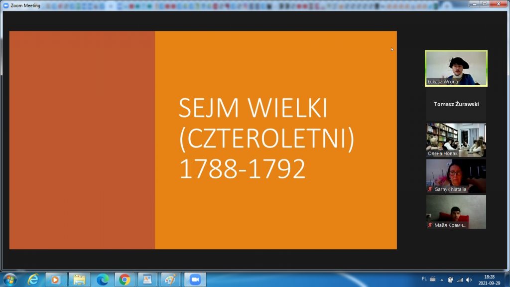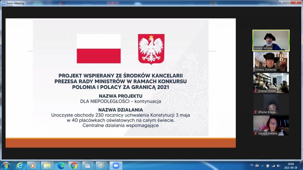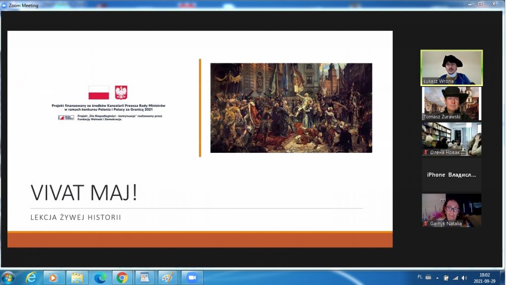 Młodzież z Polskiego Kulturalno-Oświatowego Stowarzyszenia “Rodzina” w Browarach i Polskiego Kulturalno-Oświatowego Stowarzyszenia miasta Krasiłowa w dniu 29 września 2021 r. uczestniczyła w lekcji żywej historii on-line VIVAT MAJ