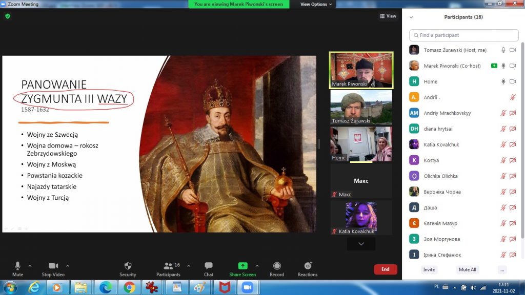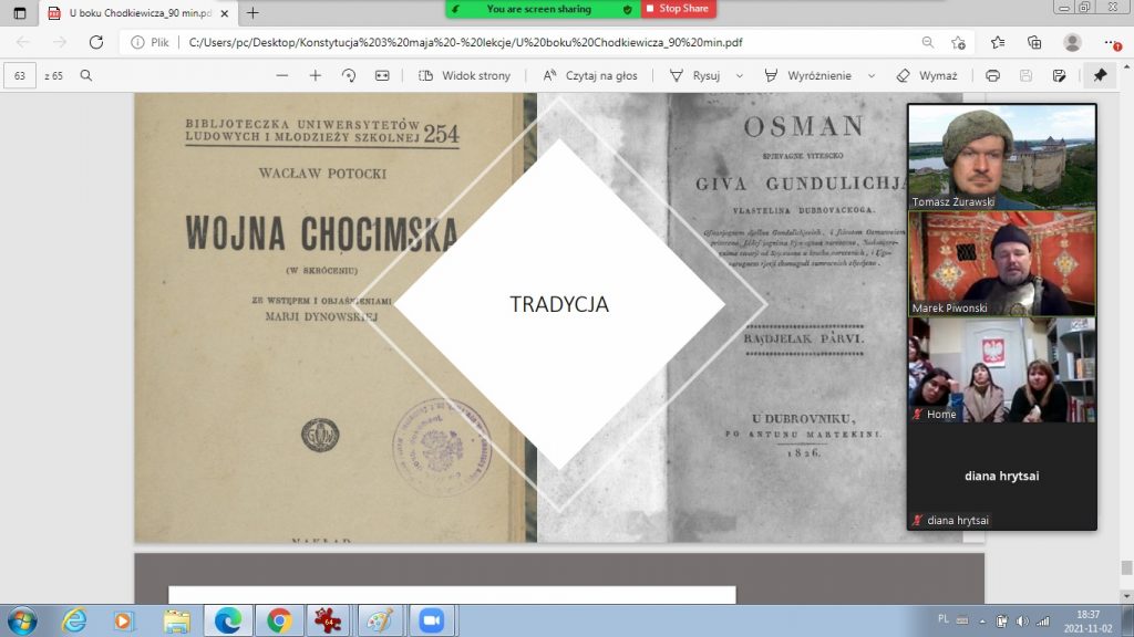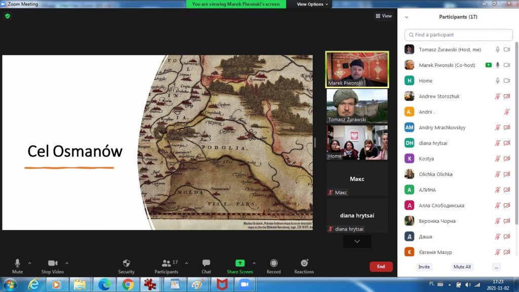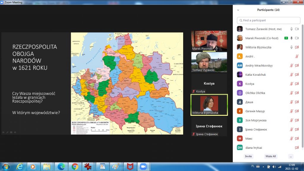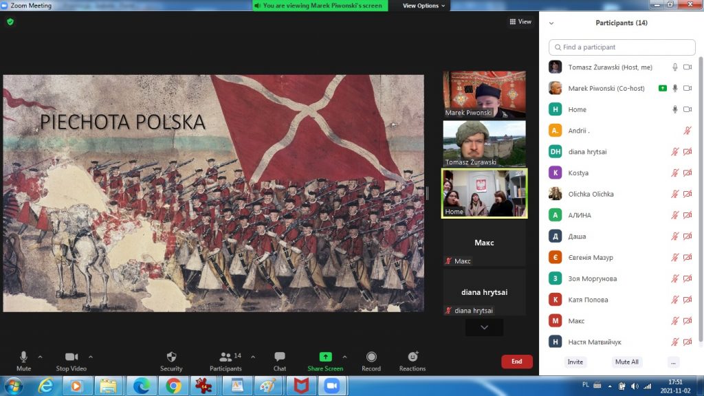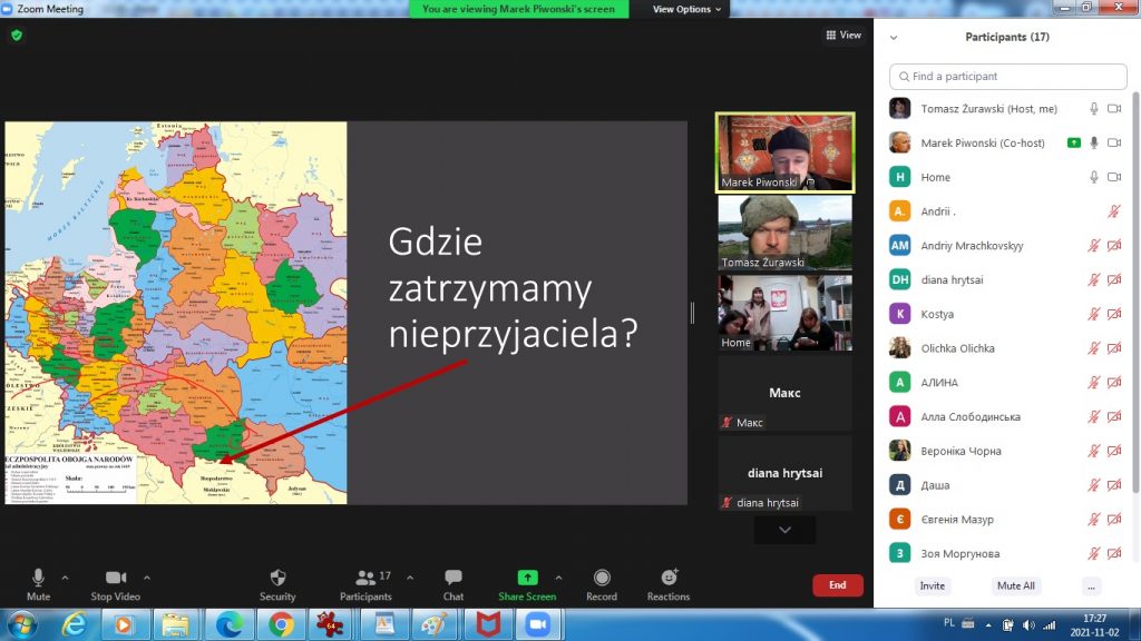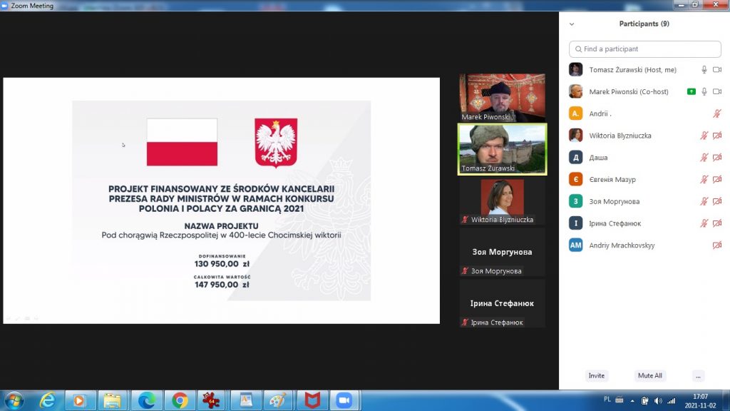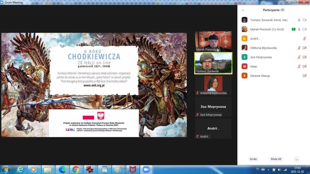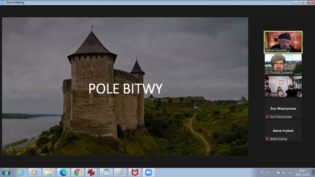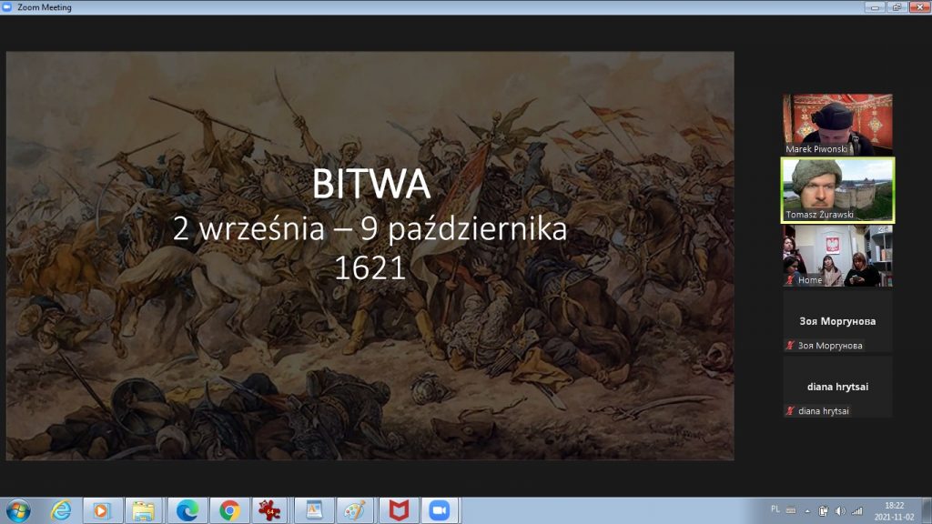Młodzież z Centrum Rozwoju i Partnerstwa “Polonia” w Winnicy 2 listopada uczestniczyła w on-line lekcji “U boku Chodkiewicza” z okazji obchodów 400. rocznicy Bitwy Chocimskiej
