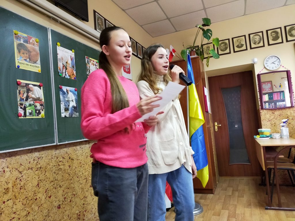 Prezes TKP w Kowlu Anatolij Herka powitał gości i przypomniał najważniejsze fakty z życia wielkiego Polaka oraz przekazał życzenia pracownikom oświaty z okazji Dnia Edukacji Narodowej, ojciec Oleksander Łukaszczuk przypomniał zebranym, że papież Polak w centrum swojego życia i posługi stawiał zawsze człowieka w jego wielowymiarowości i dążeniu do Boga. Uczestnicy konkursu obejrzeli też film przypominający znaczące wydarzenia z życia bohatera konkursu. Następnie nasz duet „Superowe dziewczyny” – Sofia Samoniuk i Anhelina Piweń zaśpiewały ulubioną pieśń Jana Pawła II „Barkę” oraz piosenkę z repertuaru Magdy Anioł „Lolek”. Inni uczestnicy recytowali recytowali wiersze o papieżu.