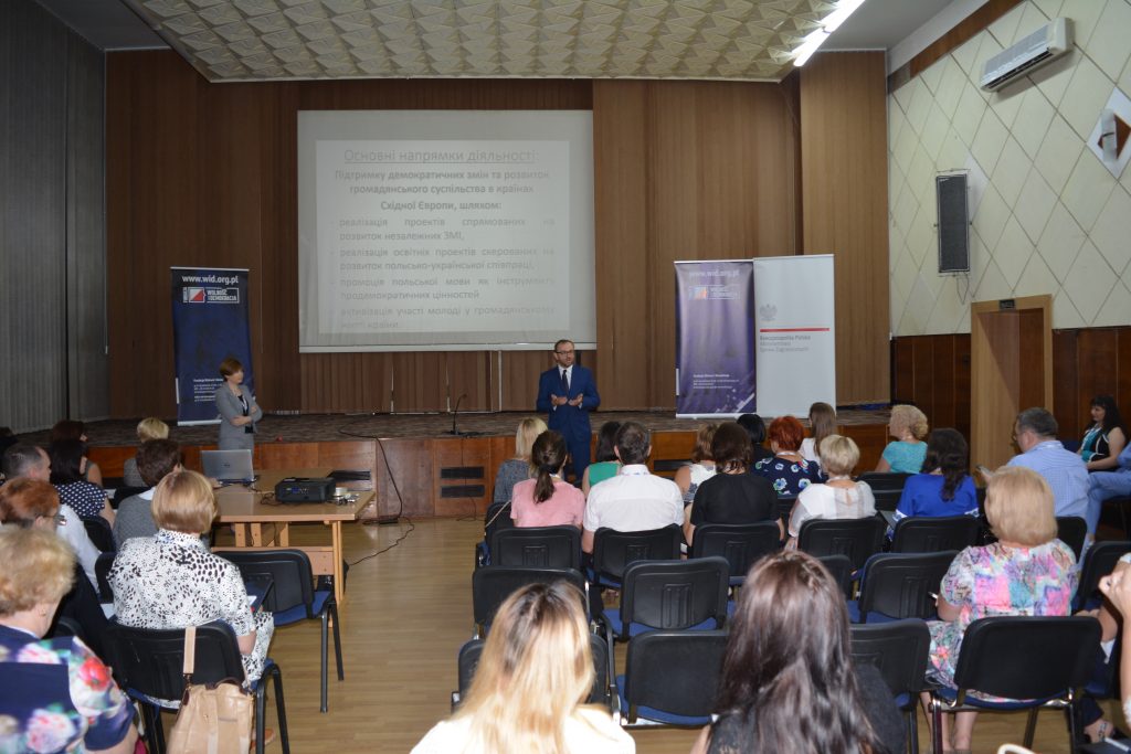 W dniach 15-17 czerwca w Winnicy Fundacja Wolność i Demokracja zorganizowała konferencję poświęconą nauczaniu języka polskiego jako obcego w szkołach ukraińskich, zatytułowaną „NOWOCZESNA SZKOŁA, PRZYJAZNY NAUCZYCIEL, KREATYWNY UCZEŃ, CZYLI O NAUCZANIU JĘZYKA POLSKIEGO JAKO OBCEGO”. Została zrealizowana jako część projektu „Wybieram Polski. Promocja języka polskiego w szkołach ukraińskich” współfinansowanego przez Ministerstwo Spraw Zagranicznych RP w ramach konkursu „Współpraca w dziedzinie dyplomacji publicznej 2018”. Konferencja obejmowała dwa moduły. Pierwszy był skierowany do dyrektorów i nauczycieli 20 szkół z całej Ukrainy, wyłonionych w drodze konkursu, które dołączyły do projektu z myślą o wprowadzeniu u siebie zasad szkoły współpracy i stworzenia nowoczesnych pracowni języka polskiego, sprzyjających kreatywnemu i efektywnemu nauczaniu przedmiotu.