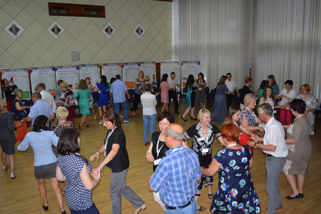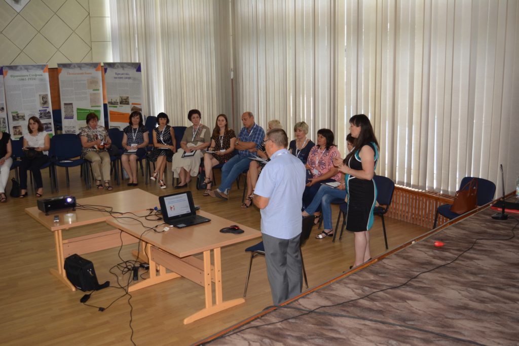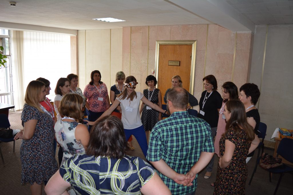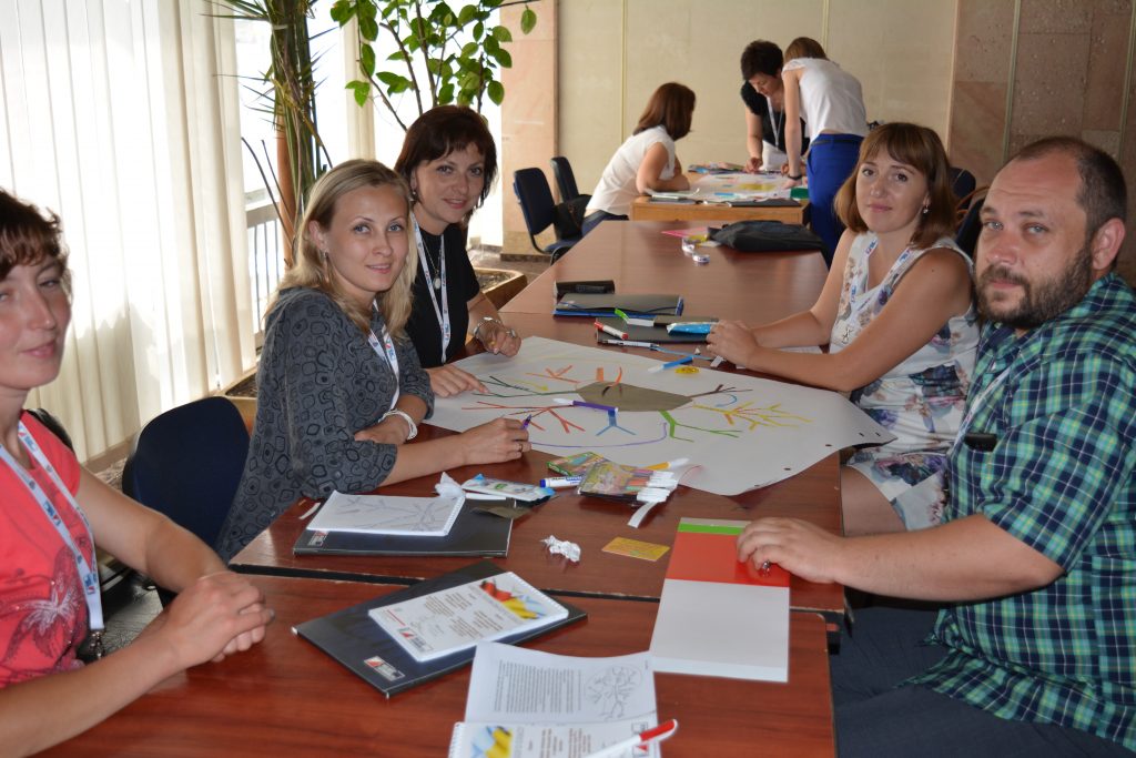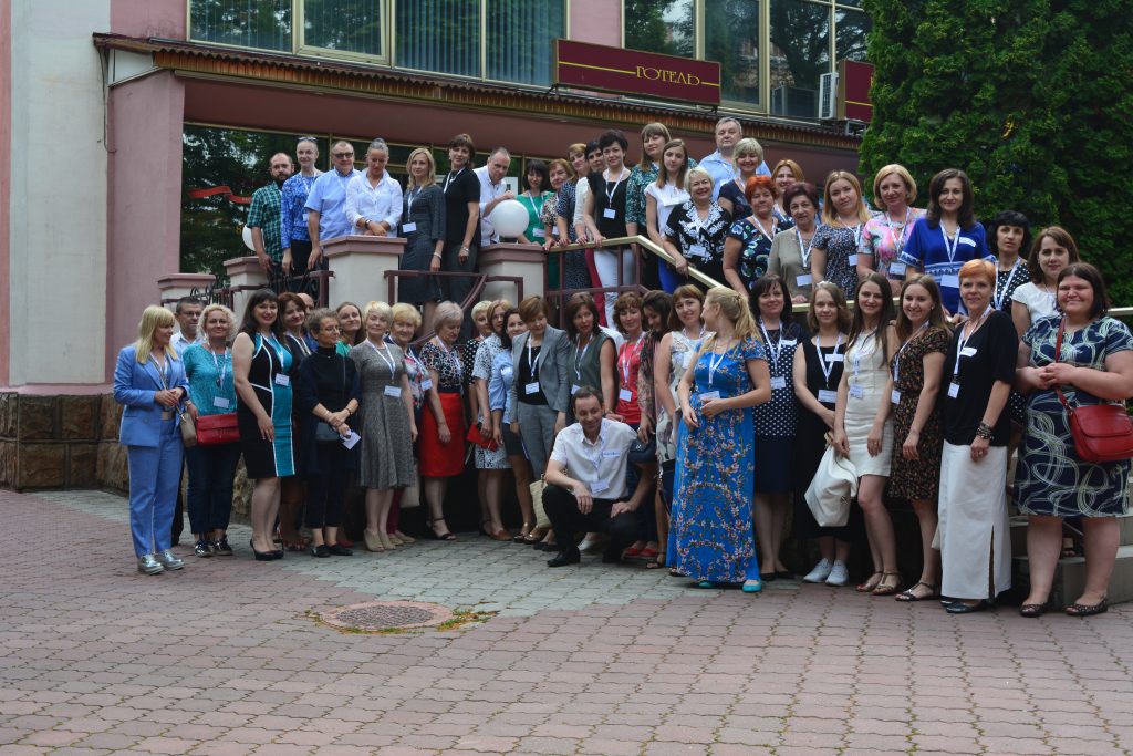 Następnie przedstawiciele szkół pracowali w grupach warsztatowych, realizując oddzielnie program I i II modułu konferencji. Uczestnicy I modułu brali udział w warsztatach dla dyrektorów i nauczycieli z zakresu wdrażania metod partycypacji „Szkoła współpracy” prowadzonych przez Andrzeja Pery. Julia Savelieva zaprezentowała opracowane przez zespół Fundacji Wolność i Demokracja poradniki aranżacji pracowni polonistycznej i innowacyjnego nauczyciela. Dodatkowo uczestnicy pracowali w oddzielnych grupach nauczycieli i dyrektorów. Dyrektorzy kontynuowali pracę nad budowaniem szkoły współpracy, zgłębiając temat: czym jest „Turkusowy znak jakości”, czyli co jest ważne w życiu szkoły i dlaczego. Nauczyciele poloniści natomiast wspólnie z prof. Beatą Obsulewicz z Katolickiego Uniwersytetu Lubelskiego poznawali zasady twórczego notowania i opanowywali technikę sporządzania map myśli. Agnieszka Jastrzębska z Centrum Języka Polskiego i Kultury Polskiej dla Cudzoziemców „Polonicum” Uniwersytetu Warszawskiego metodą warsztatową pokazała, że gry mogą uczyć, a nauka – bawić”, a wspólnie z Dorotą Zackiewicz, również z Centrum Języka Polskiego i Kultury Polskiej dla Cudzoziemców „Polonicum”, poprowadziła prezentację i warsztaty z wykorzystania opracowanego we współpracy z Fundacją Wolność i Demokracja podręcznika do nauki języka polskiego „Raz, dwa, trzy i po polsku mówisz Ty”, który znajduje się na liście podręczników rekomendowanych przez Ministerstwo Edukacji Ukrainy do nauczania języka polskiego w szkołach ukraińskich.