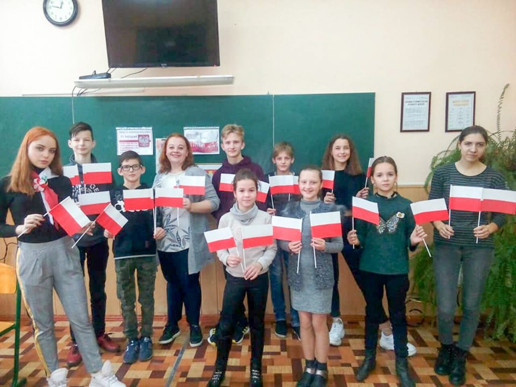 Obchody 101. rocznicy odzyskania niepodległości przez Polskę w Szkole Sobotniej przy ZPU Oddział w Sławucie