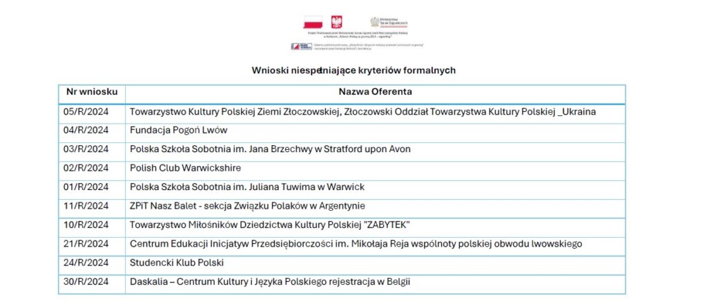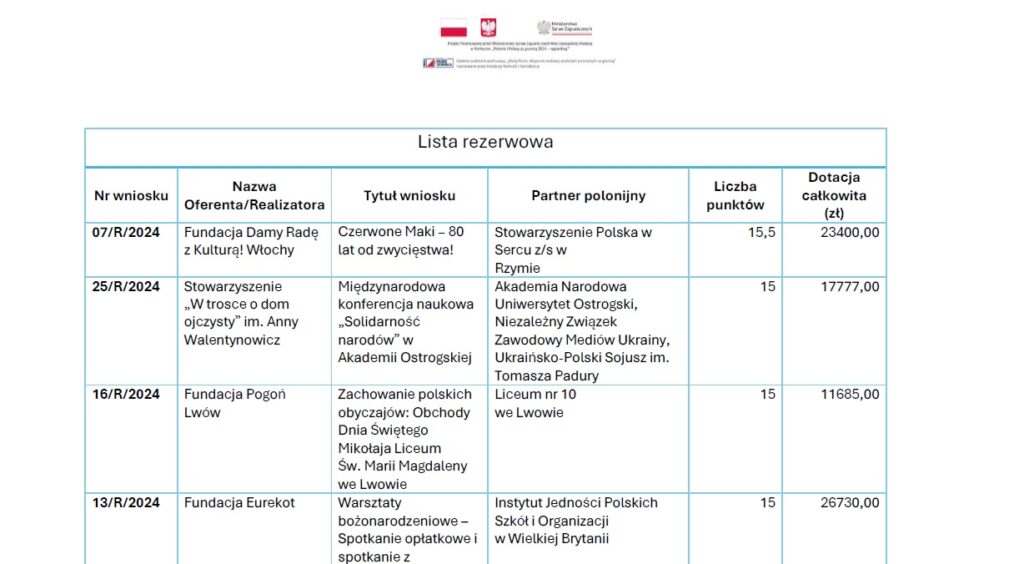 Konkurs realizowany jest ze środków Państwa Polskiego – Ministerstwa Spraw Zagranicznych w ramach Konkursu „Polonia i Polacy za granicą 2024 – regranting”