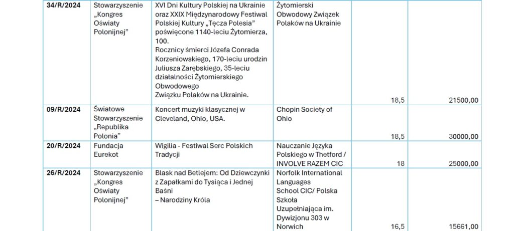 Ogłaszamy wyniki naboru realizatorów projektów regrantingowych w ramach konkursu Bliżej Polski. Wsparcie realizacji wydarzeń polonijnych za granicą _2024