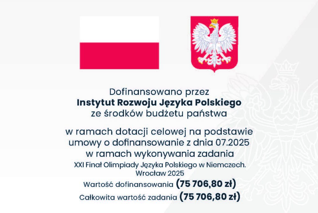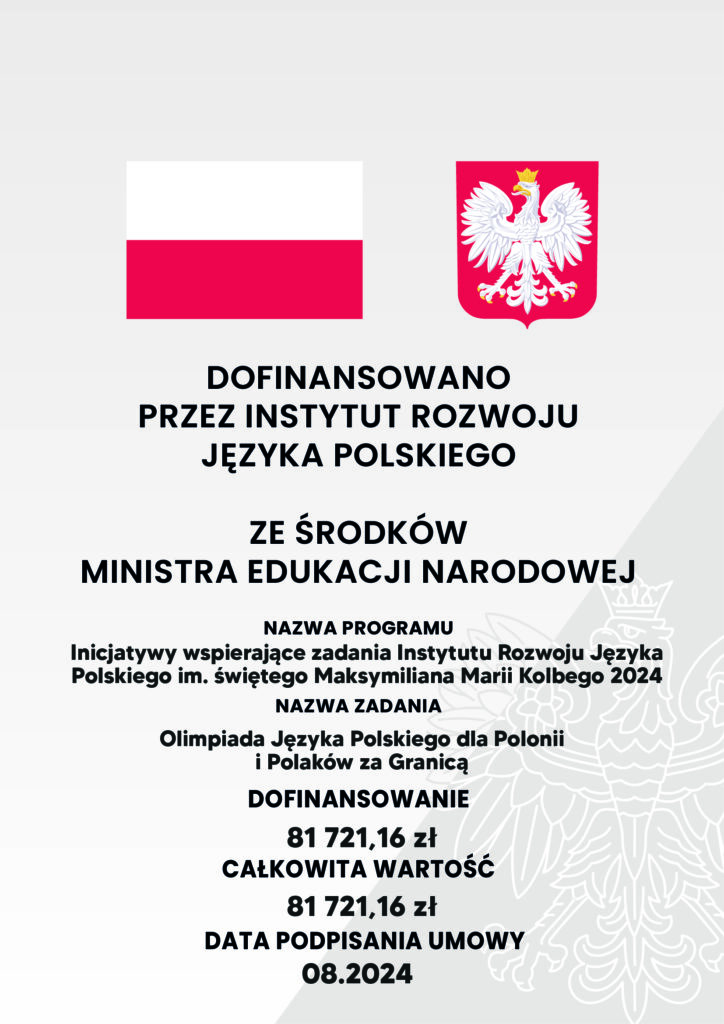Projekt dofinansowany przez Instytut Rozwoju Języka Polskiego im. św. Maksymiliana Marii Kolbego ze środków Ministerstwa Edukacji Narodowej w 2024 roku.