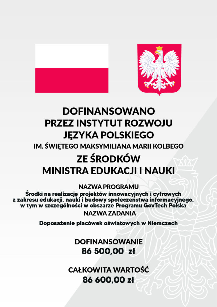 Projekt dofinansowany przez Instytut Rozwoju Języka Polskiego im. św. Maksymiliana Marii Kolbego ze środków Ministerstwa Edukacji Narodowej.