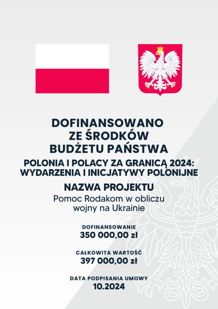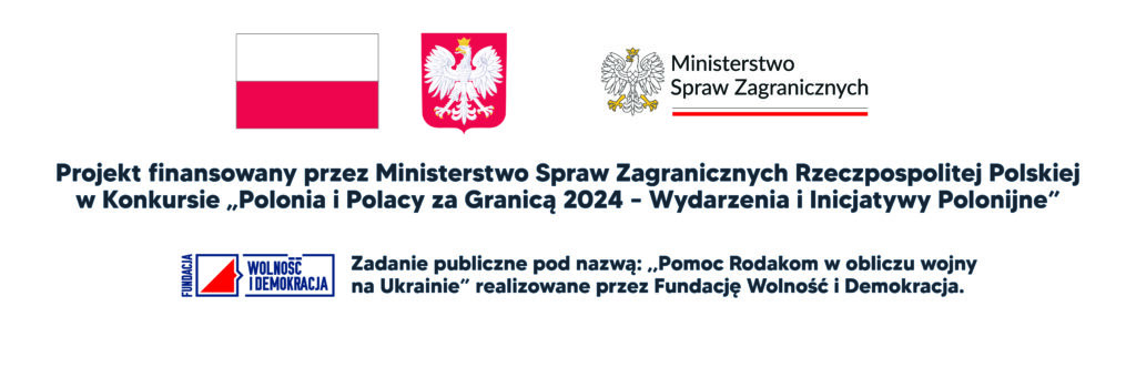 Projekt finansowany przez Ministerstwo Spraw Zagranicznych Rzeczypospolitej Polskiej w konkursie „Polonia i Polacy za Granicą 2024 – Wydarzenia i inicjatywy polonijne”.