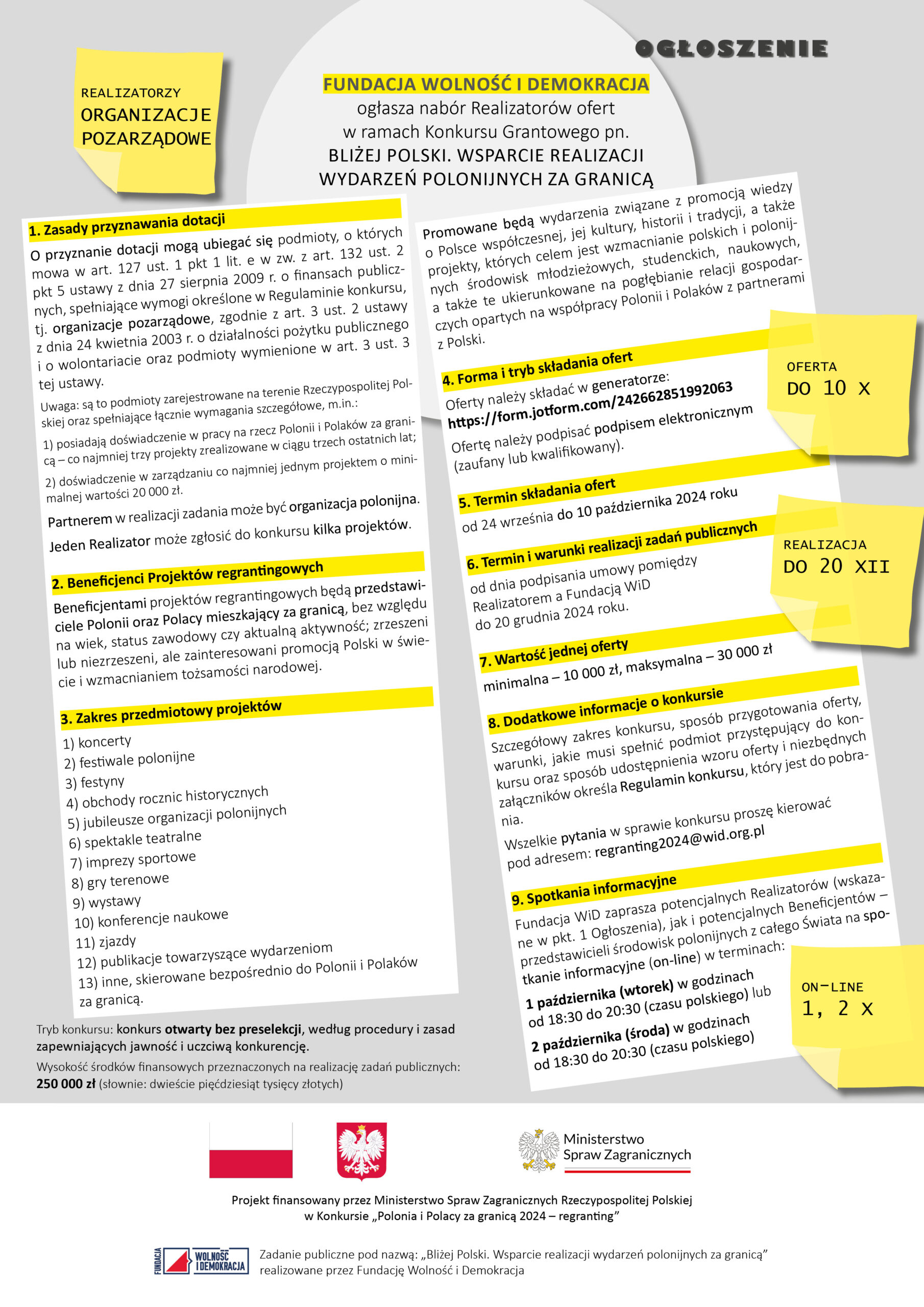 - Regulamin konkursu Bliżej Polski. Wsparcie realizacji wydarzeń polonijnych za granicą _2024 link