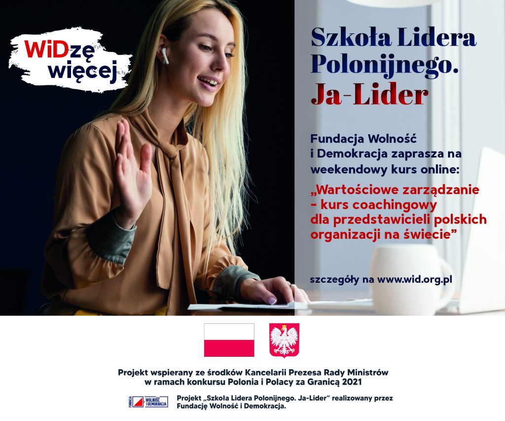 Zapraszamy na weekendowy kurs online “Wartościowe zarządzanie – kurs coachingowy dla przedstawicieli polskich organizacji na świecie”, w ramach projektu „Szkoła Lidera Polonijnego. Ja-Lider”.