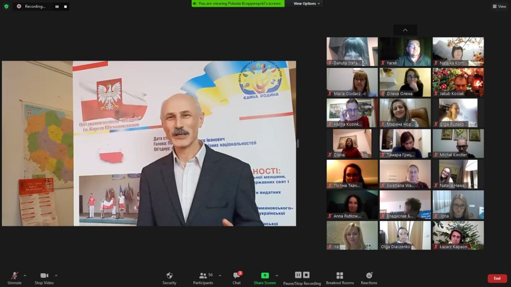 W roku 2020 przenieśliśmy wiele aktywności do Internetu. Taki los spotkał również projekt „Liderskie Centrum Szkoleniowe. Profesjonalizacja polskich organizacji na Ukrainie. Kontynuacja”, który był następcą projektu z 2019 roku. Założeniem projektu było przeprowadzenie specjalnego szkolenia dla 10 organizacji polskich z Ukrainy – w zadaniu wzięło udział 10 organizacji polskich (z każdej organizacji po 10 osób), co daje łączną liczbę 100 uczestników szkoleń. Szkolenia były prowadzone przez doświadczone pary trenerskie (łącznie 10 trenerów). W projekcie wzięli udział pracownicy następujących organizacji: