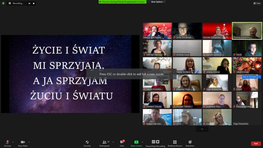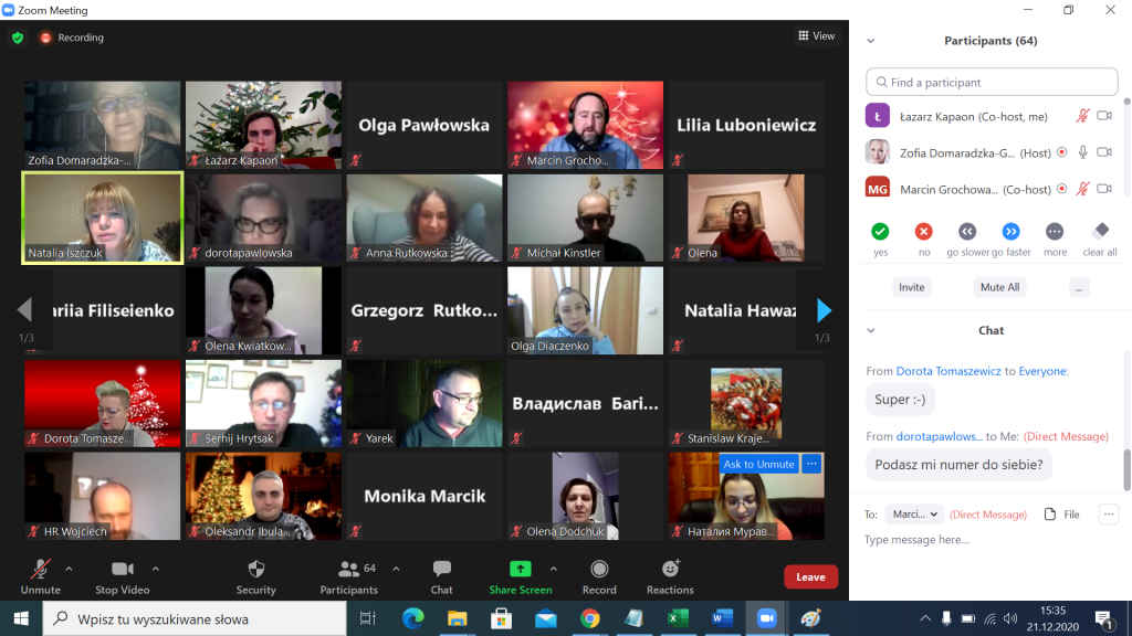 Wszystkie szkolenia odbyły się, ze względu na trwającą pandemię, online. Spotkania odbywały się za pośrednictwem platformy Zoom.