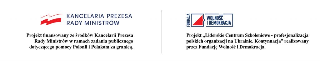 Projekt “Liderskie Centrum Szkoleniowe. Profesjonalizacja polskich organizacji na Ukrainie. Kontynuacja” jest realizowany przez Fundację Wolność i Demokracja.