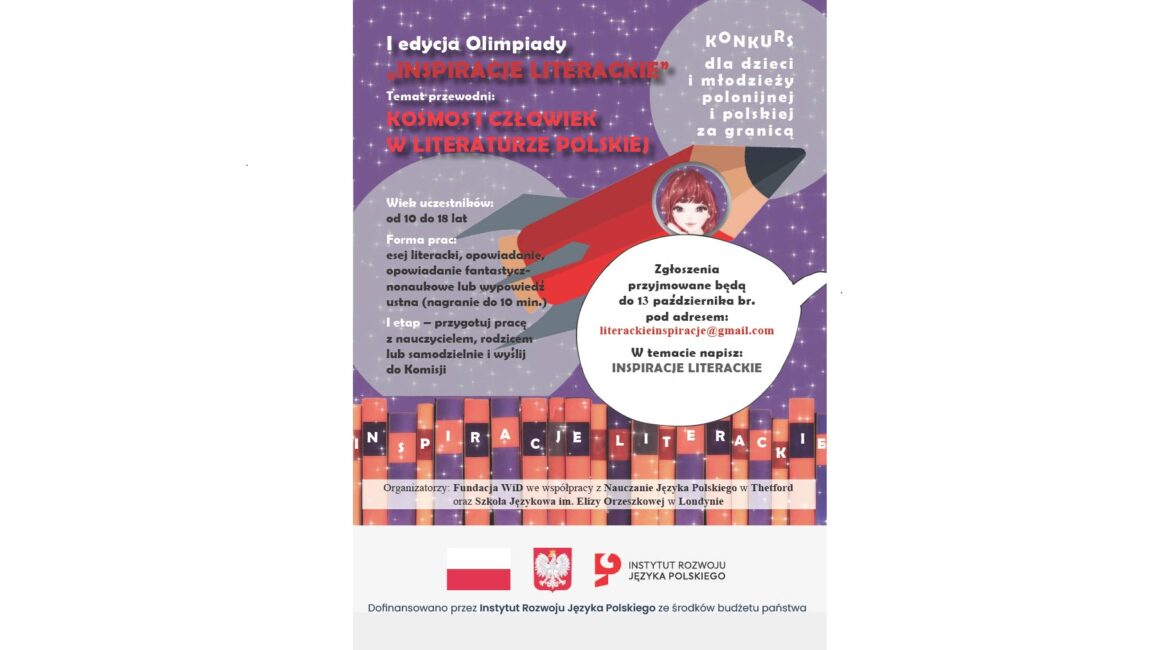 Fundacja Wolność i Demokracja we współpracy z INVOLVE RAZEM CIC i Szkołą Językową im. Elizy Orzeszkowej w Londynie rozpoczyna konkurs/olimpiadę na temat „Kosmos i człowiek w literaturze polskiej”. Uczestnicy mogą potraktować go dosłownie albo zinterpretować go w sposób filozoficzny lub symboliczny, odwołując się do dowolnych utworów literatury polskiej.