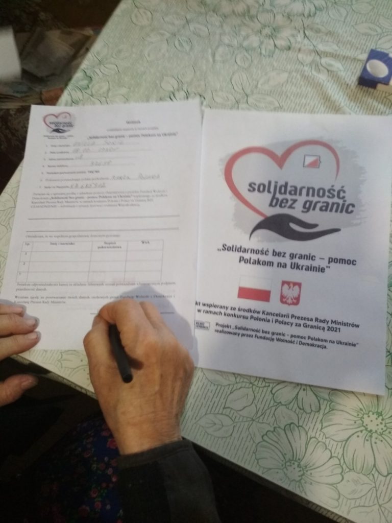 W imieniu osób, które otrzymały zapomogi, serdecznie dziękujemy Fundacji Wolność i Demokracja za działanie „Pomoc charytatywna dla członków Towarzystwa Kultury Polskiej Ziemi Lwowskiej Oddział w Samborze” realizowane w ramach projektu „Solidarność bez granic – pomoc Polakom na Ukrainie”.