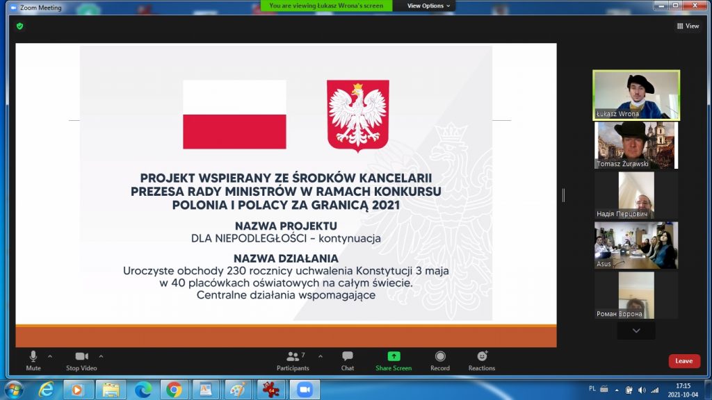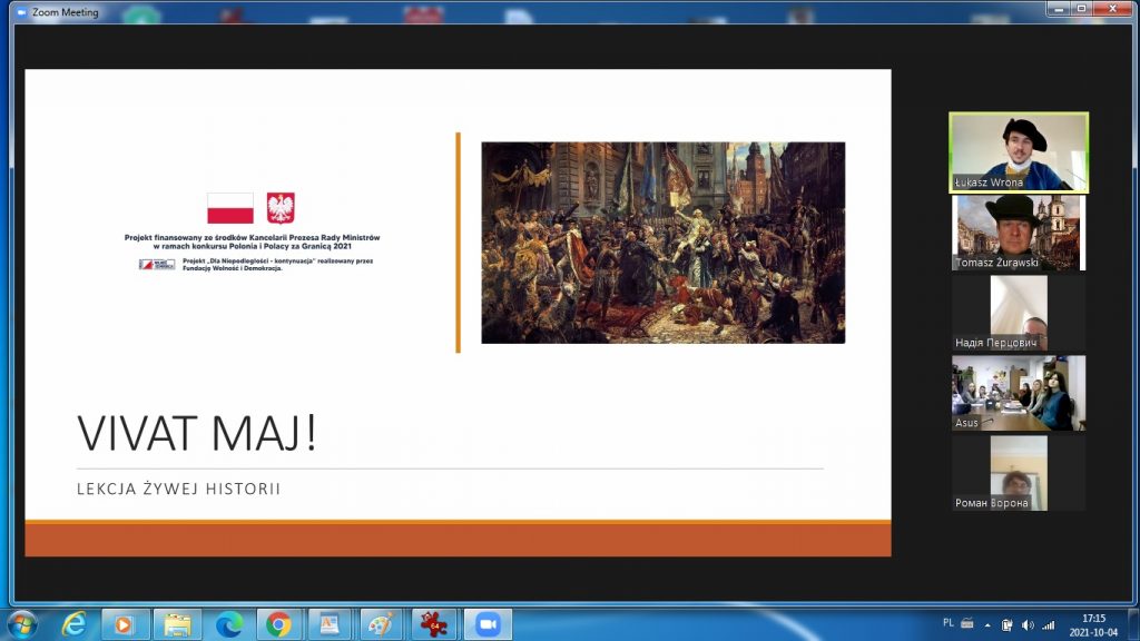 Uczniowie ze Szkoły Sobotnio-Niedzielnej TKPZL w Czerwonogradzie i Polskiej Sobotniej Szkoły przy Towarzystwie Kultury Polskiej “Pokucie” w Kolomyi w 4 października 2021 uczestniczyli w lekcji żywej historii z okazji obchodów 230. rocznicy uchwalenia Konstytucji 3 maja.