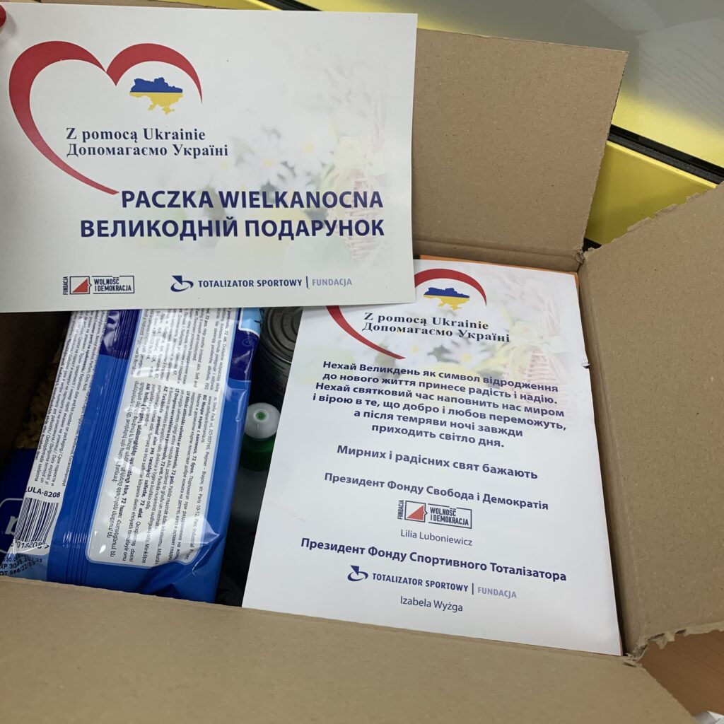 Wspólnie z naszym darczyńcą Fundacją Totalizatora Sportowego w ramach akcji „Paczka wielkanocna dla Rodaków na Ukrainie” dotarlismy z pomocą do 500 rodzin na codzień mieszkających w obwodzie charkowskim i donieckim.