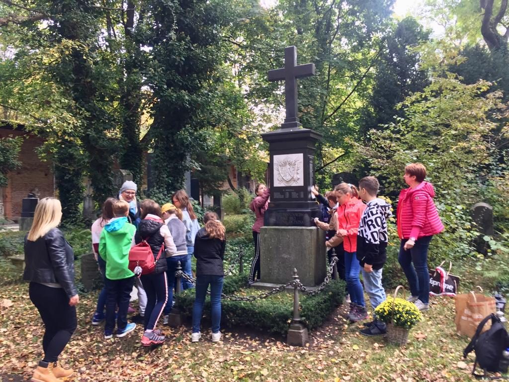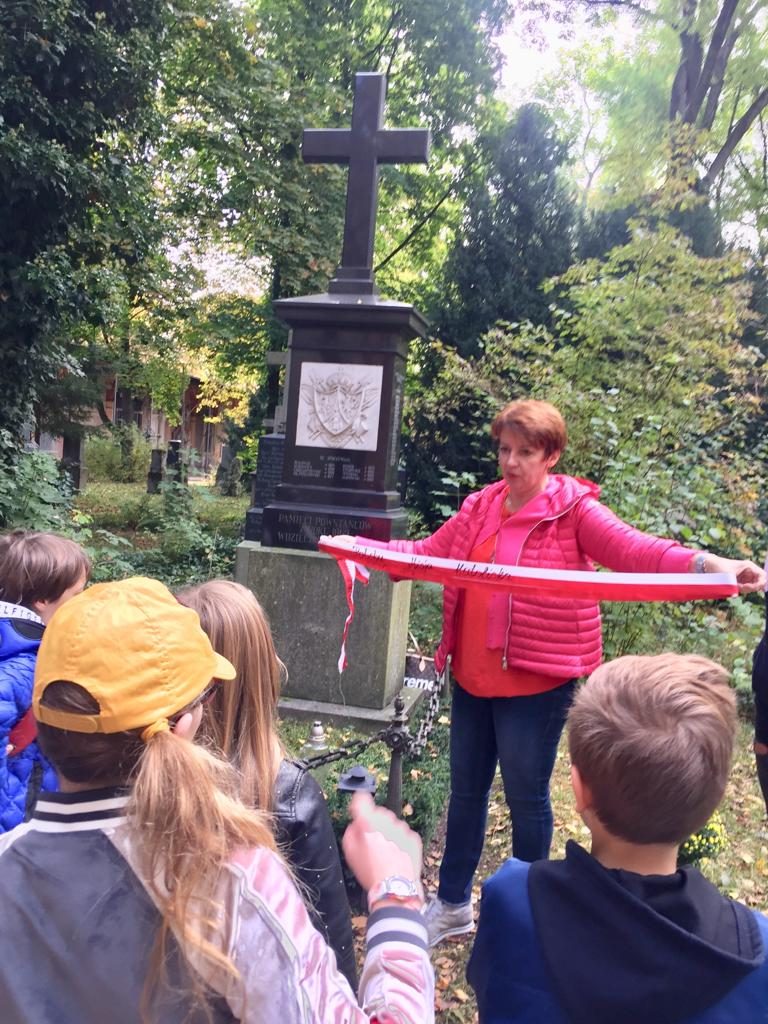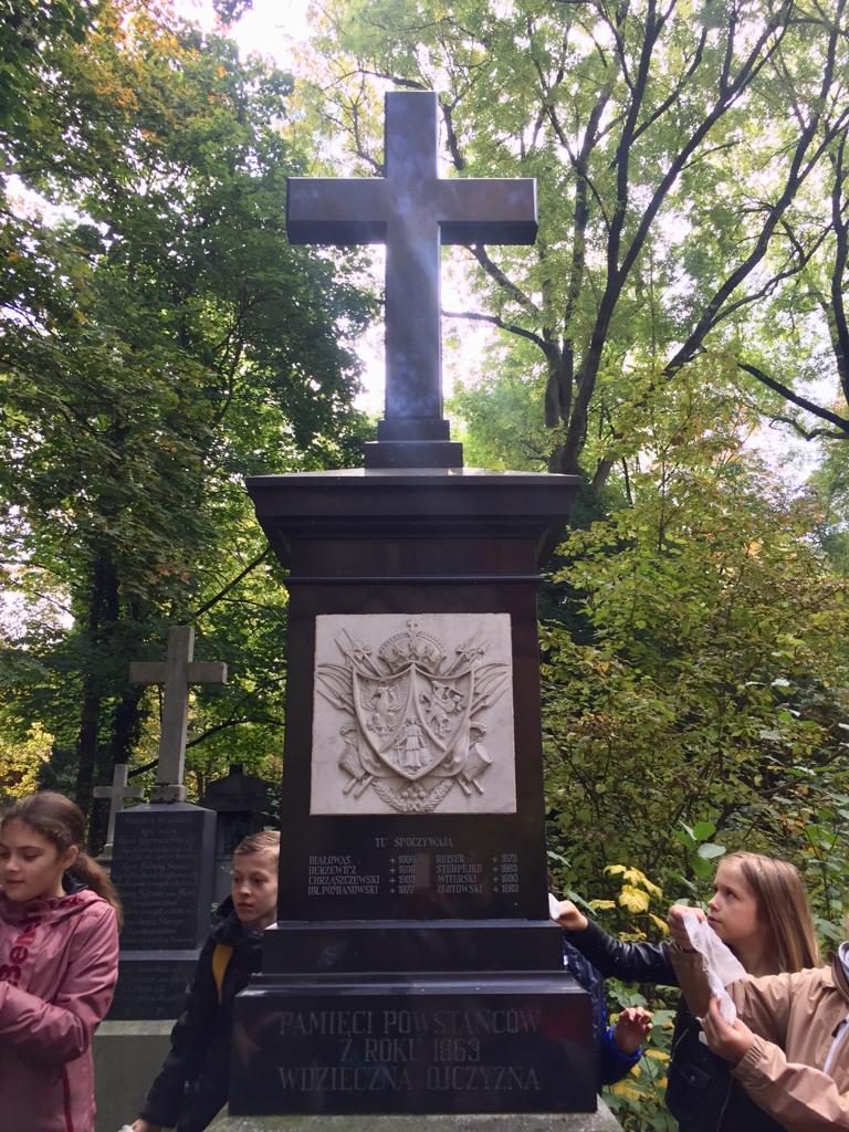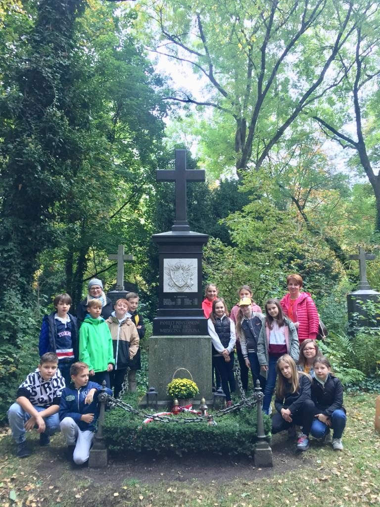 W sobotnie przedpołudnie 19.10.2019 delegacja uczniów Szkoły Przedmiotów Ojczystych im. Jana Pawła II w Monachium pod opieką nauczycielek odwiedziła monachijski Cmentarz Południowy, aby złożyć hołd pogrzebanym tam polskim uczestnikom Powstania Styczniowego. Dzieci ochoczo oczyściły grób z liści, wymyły płytę pomnika i uporządkowały teren wokół mogiły. Nagrobek przybrały kwiatami przepasanymi biało-czerwoną szarfą i zapaliły znicze. Uczniowie w skupieniu wysłuchali opowieści o losach powstańców, którzy ginęli walcząc o wolność ojczyzny lub byli zmuszeni żyć na obczyźnie i umierali z daleka od rodzinnego kraju. W zadumie wszyscy odmówili modlitwę za zmarłych.