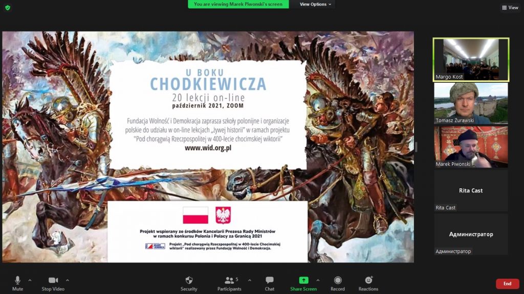 Uczniowie z Liceum nr 10 w Kowlu 18 listopada uczestniczyli w lekcji online „U boku Chodkiewicza” z okazji obchodów 400. rocznicy wiktorii chocimskiej.