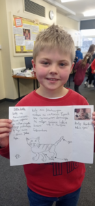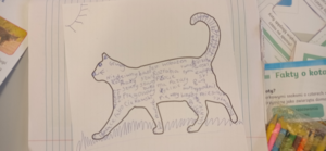 Trzecioklasiści w trakcie swoich zajęć rozmawiali na temat treści książki, dzielili się swoimi spostrzeżeniami, z radością opowiadali o najzabawniejszych przygodach i wyczynach głównego bohatera. Następnie wykonali metryczkę książki, porządkowali zdarzenia według kolejności chronologicznej, wykonali scenki dramowe, sprawdzające znajomość lektury, a na koniec wykonali piękne tematyczne prace plastyczne i wzięli udział w konkursie na najpiękniejszą okładkę przygód niesfornego kotka.