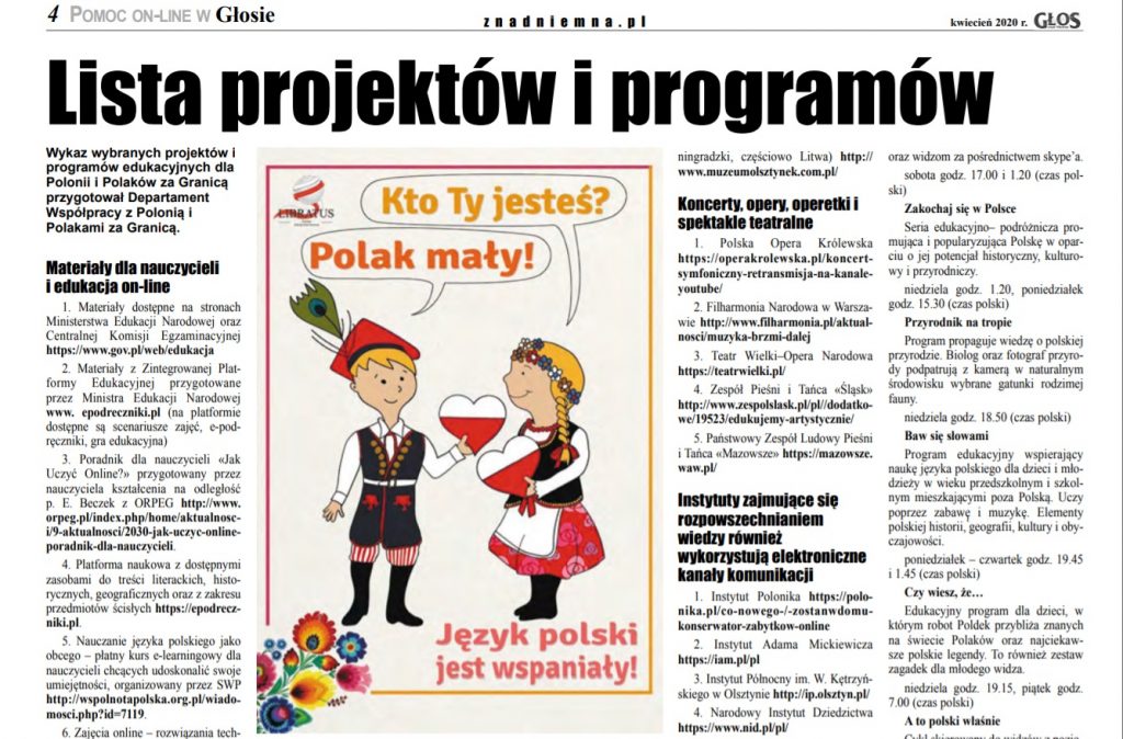 Zapraszamy do czytania 4/2020 numeru miesięcznika “Głos znad Niemna “. Jest to ogólnokrajowe pismo SZ “Związek Polaków na Białorusi ”