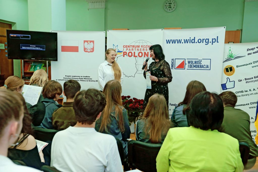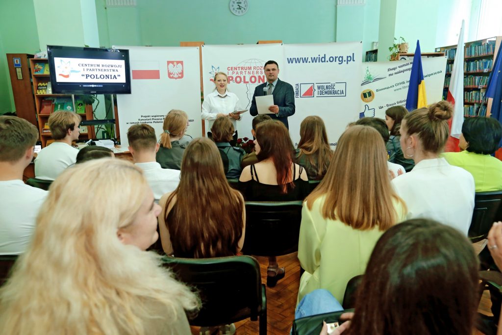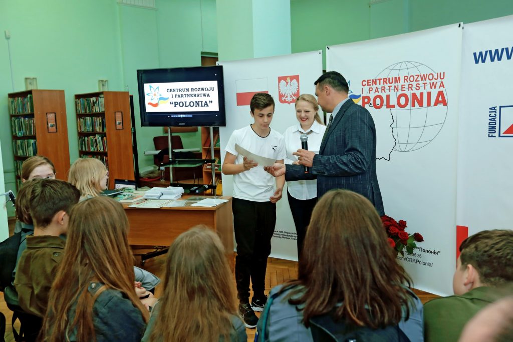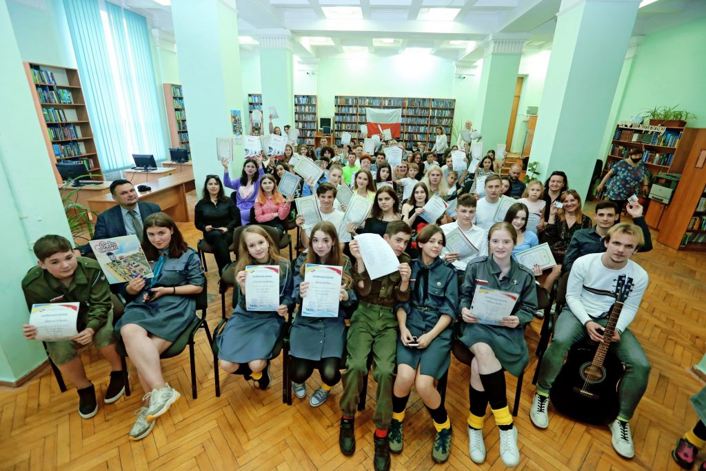 Spotkanie Dziale Ekonomii i Technologii Nowoczesnych Winnickiej Obwodowej Uniwersalnej Naukowej Biblioteki im. K.A. Timiriazewa rozpoczęliśmy od odśpiewania hymnów Polski i Ukrainy. Sala biblioteki zaledwie zmieściła uczniów, ich rodziców i gości uroczystości. Na spotkaniu był obecny Pan Konsul Bartosz Szeliga, który wręczył wszystkim uczniom Centrum Rozwoju i Partnerstwa „Polonia” świadectwa ukończenia roku szkolnego i certyfikaty znajomości języka polskiego. Pan konsul pogratulował wszystkim dobrych wyników w nauce języka polskiego, życzył aktywnego letniego wypoczynku i szczęśliwego do nauki powrotu we wrześniu. Dostali też dyplomy za aktywny udział w kulturalno-historycznych projektach i konkursach nasi najlepsi uczniowie: Elżbieta Jakowlewa, Aleksandra Wowk, Ewelina Mazur, Maria Czeplaka, Daria Nakoneczna, Maria Charkowa, Zofia Kozub, Daria Hykawa, Iryna Melnyk, Zofia Malinowska, Władysława Żmurczuk. Gratulujemy naszym uczniom i życzymy ciągłego rozwoju, sukcesów, pewności siebie i spełnienia marzeń!