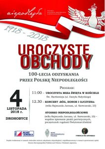 Więcej informacji na Uroczystości poświęcone obchodom 100. rocznicy odzyskania niepodległości Polski.