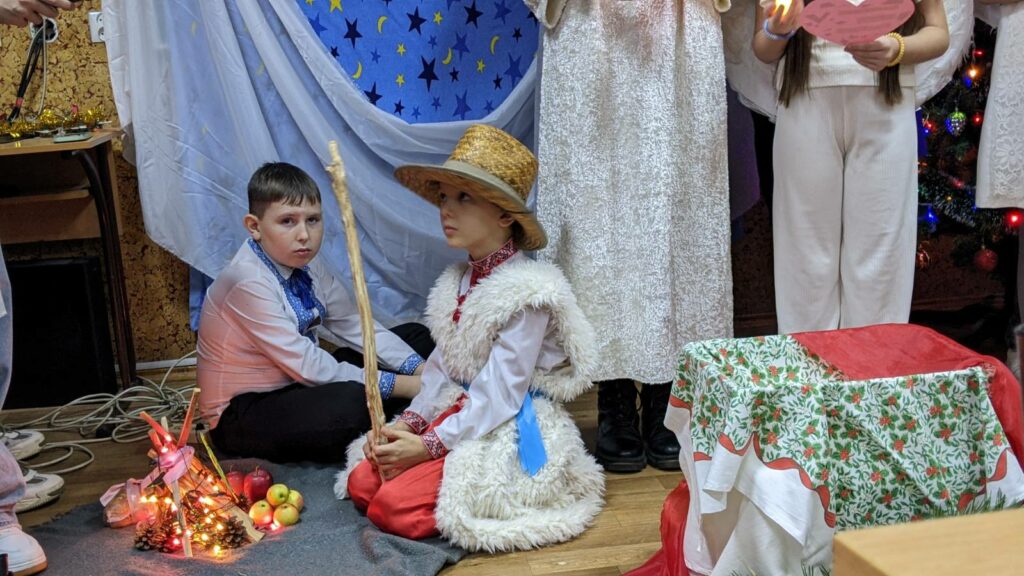 Sala szkolna miała wystrój świąteczny, było niebo z gwiazdami, paliły się świeczki, co dodało ciepła temu wydarzeniu. Prezes TKP w Kowlu złożył uczniom, rodzicom i członkom towarzystwa życzenia spokojnych świąt Bożego Narodzenia i wszelakiego dobra w nowym 2025 roku.